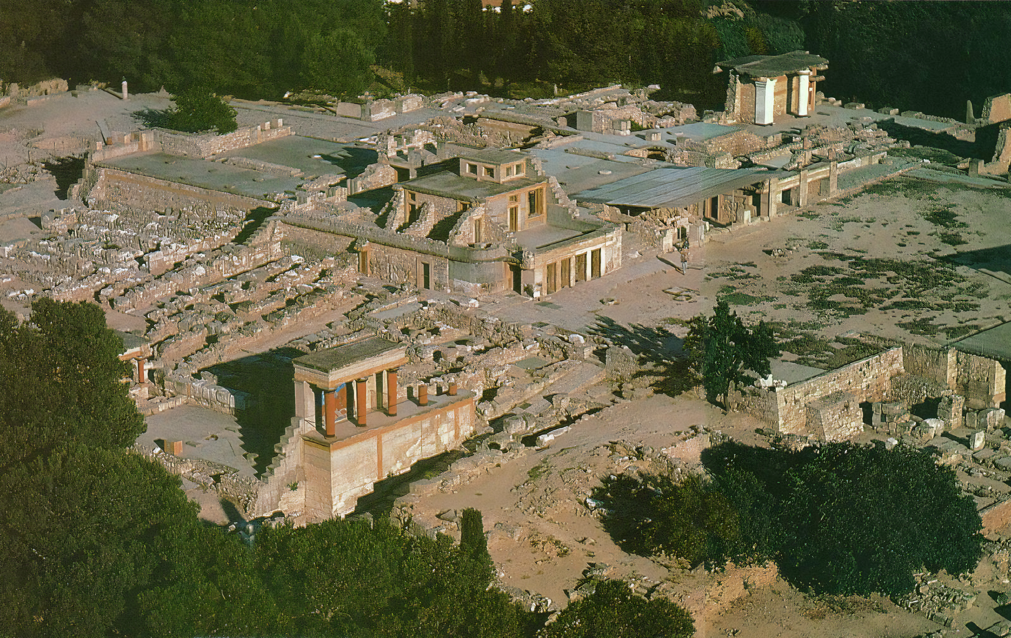 크노소스 궁전의 광범위한 재건은 발굴자 아서 에반스 경이 수행했다.