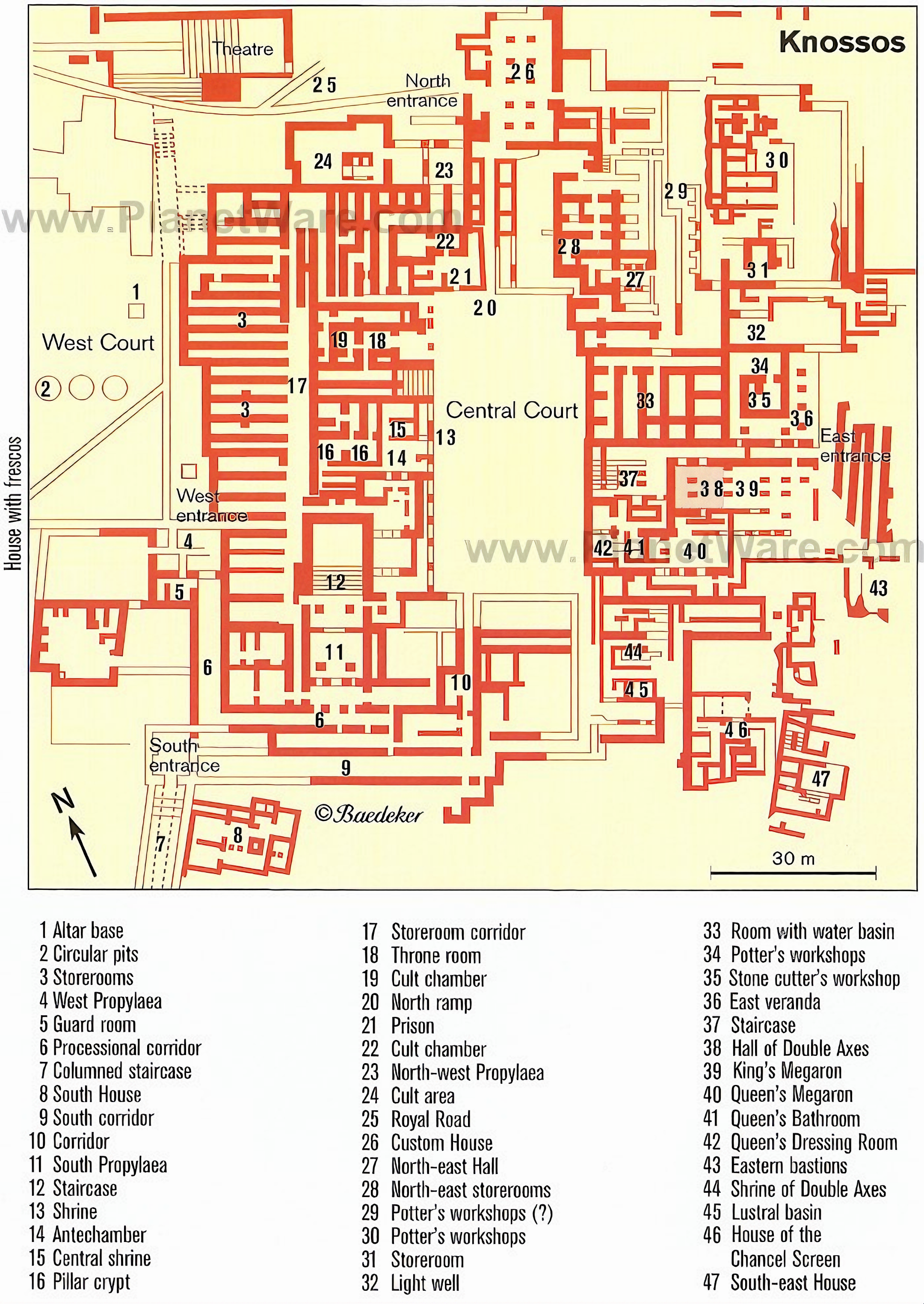 이 궁전은 기원전 1450년경에 부분적으로 파괴되었고, 그 후 미케네인들the Mycenaeans이 크노소스에 자리를 잡았다.
