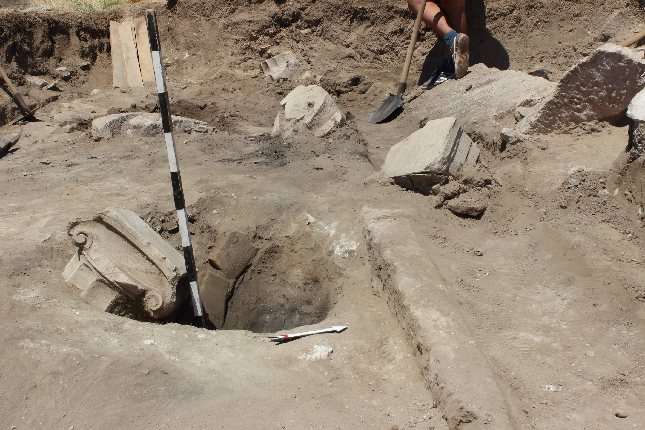 이번 시즌 발굴에서 가장 눈에 띄는 발견 중 하나는 석고로 코팅한 이오니아식Ionic 기둥머리와 받침대가 완벽하게 보존되어 있다는 것이다.
