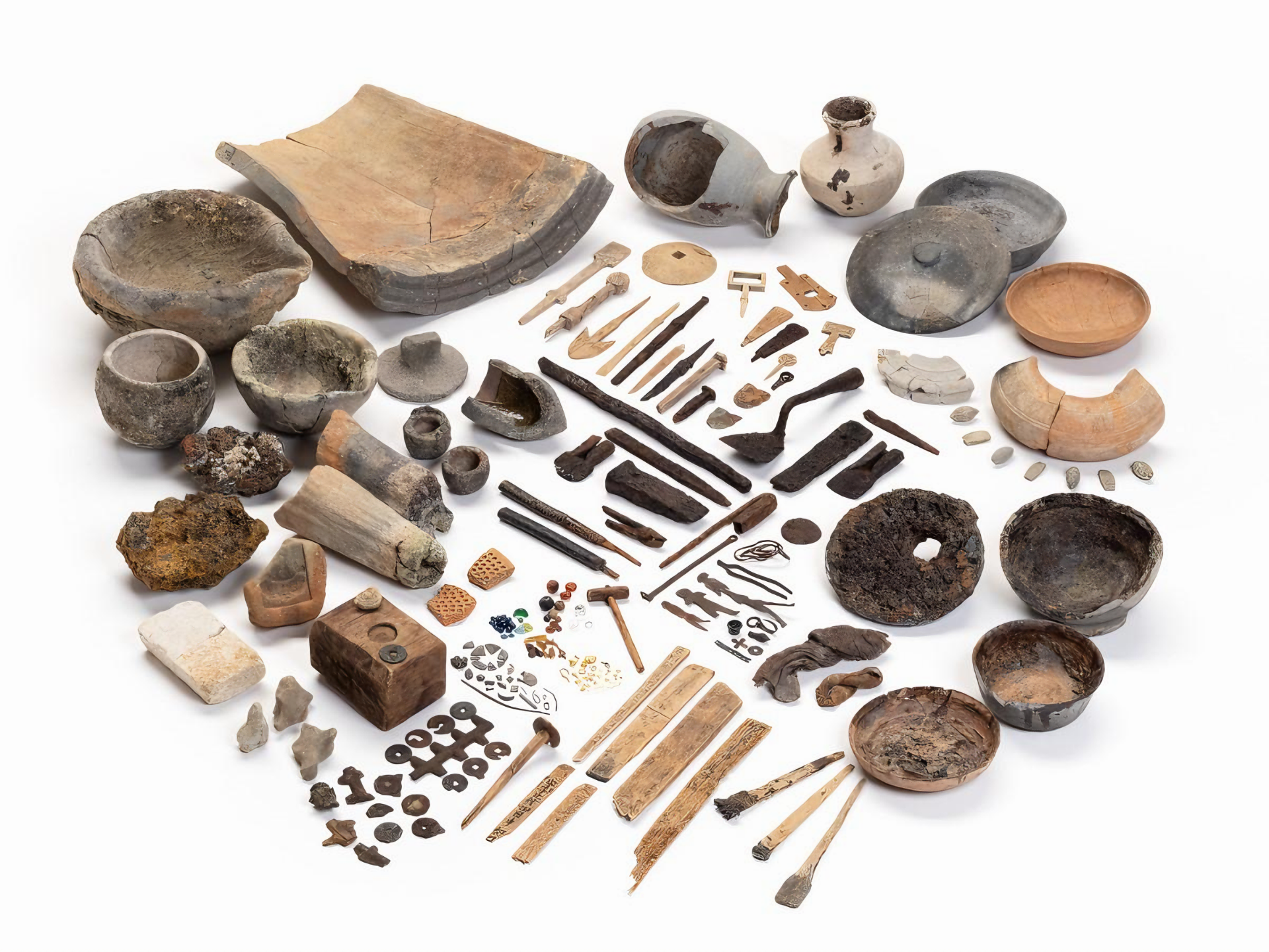 또한 함께 출토된 목간에는 황족 이름과 천무天武·지통持統 시대 기년명紀年銘에 맞추어 궁정이나 사찰 건설에 물자를 공급한 내용을 기록해 국가적 공방으로서의 유적 성격을 뒷받침한다.