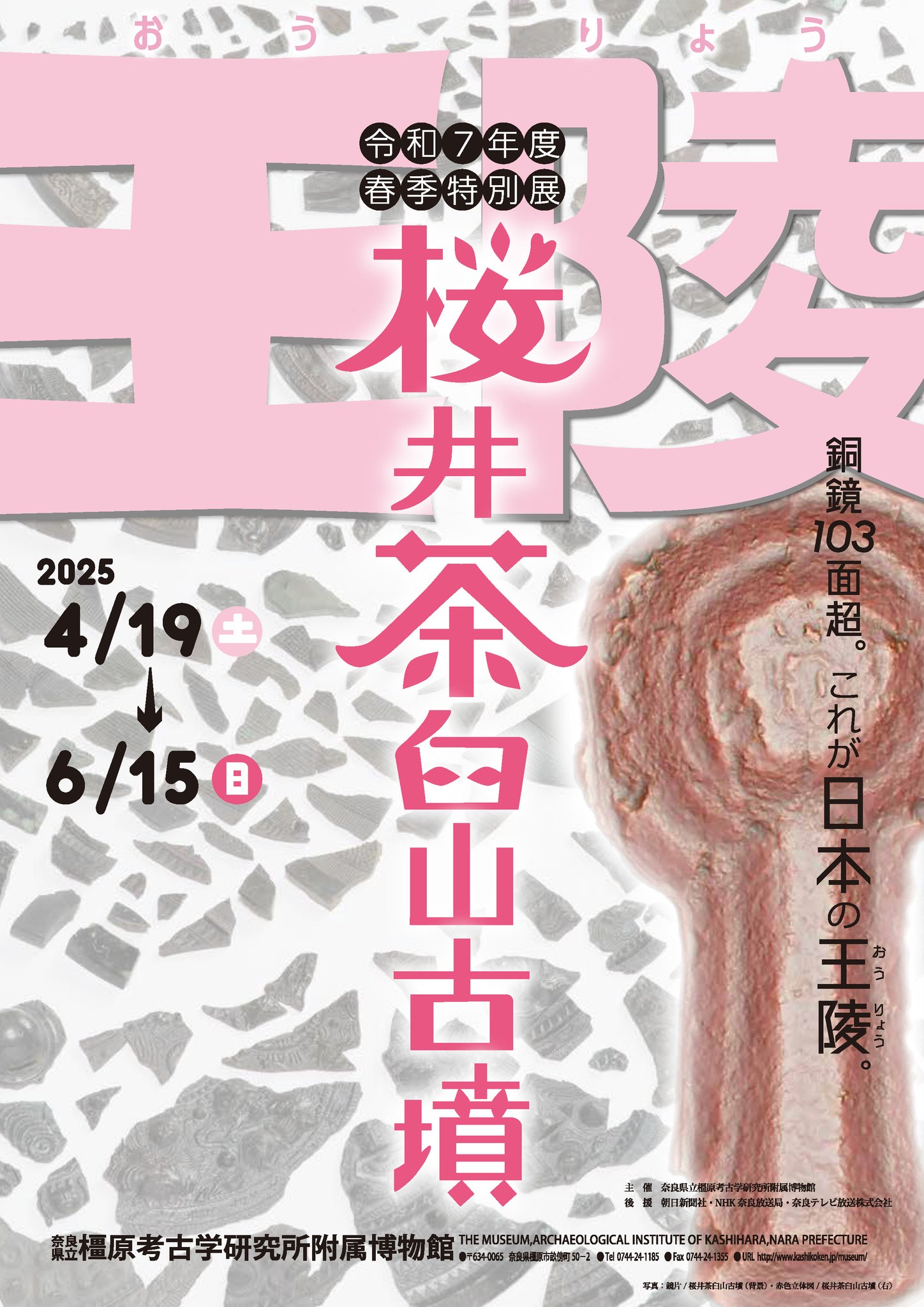 일본국 나라현립奈良県立 가시하라고고연구소橿原考古学研究所가 2025 영화令和 7년도 봄 특별전 "왕릉 사쿠라이 차우스야마 고분 王陵 桜井茶臼山古墳"을 4월 19일 개막해 6월 15일까지 개최한다.