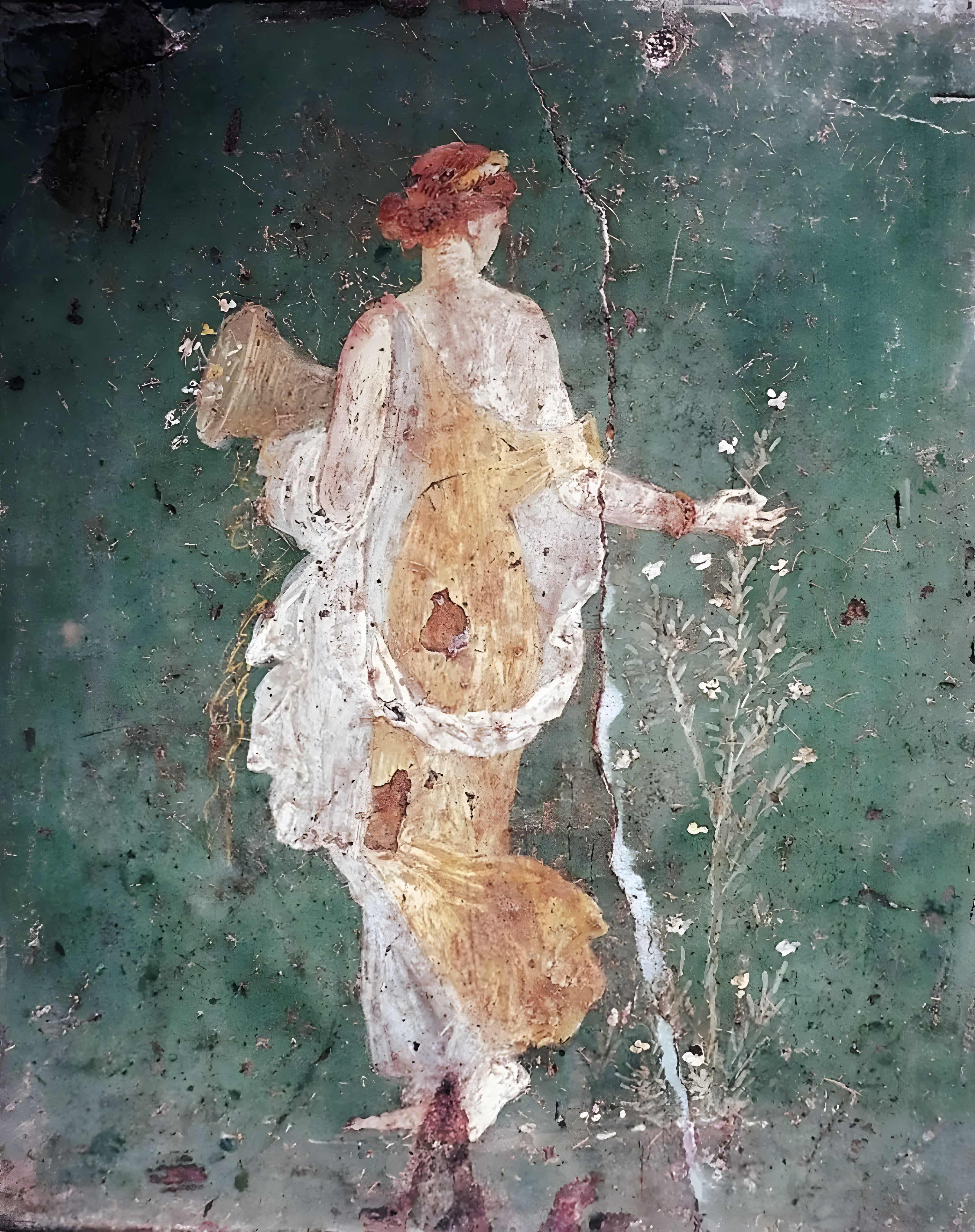플로라Flora는 로마의 꽃, 봄, 정원의 여신이다. 그는 땅의 비옥함과 봄의 도래와 연관되어 있으며 종종 꽃다발이나 풍요의 뿔(프레스코에서와 같이)을 들고 있는 것으로 묘사된다.