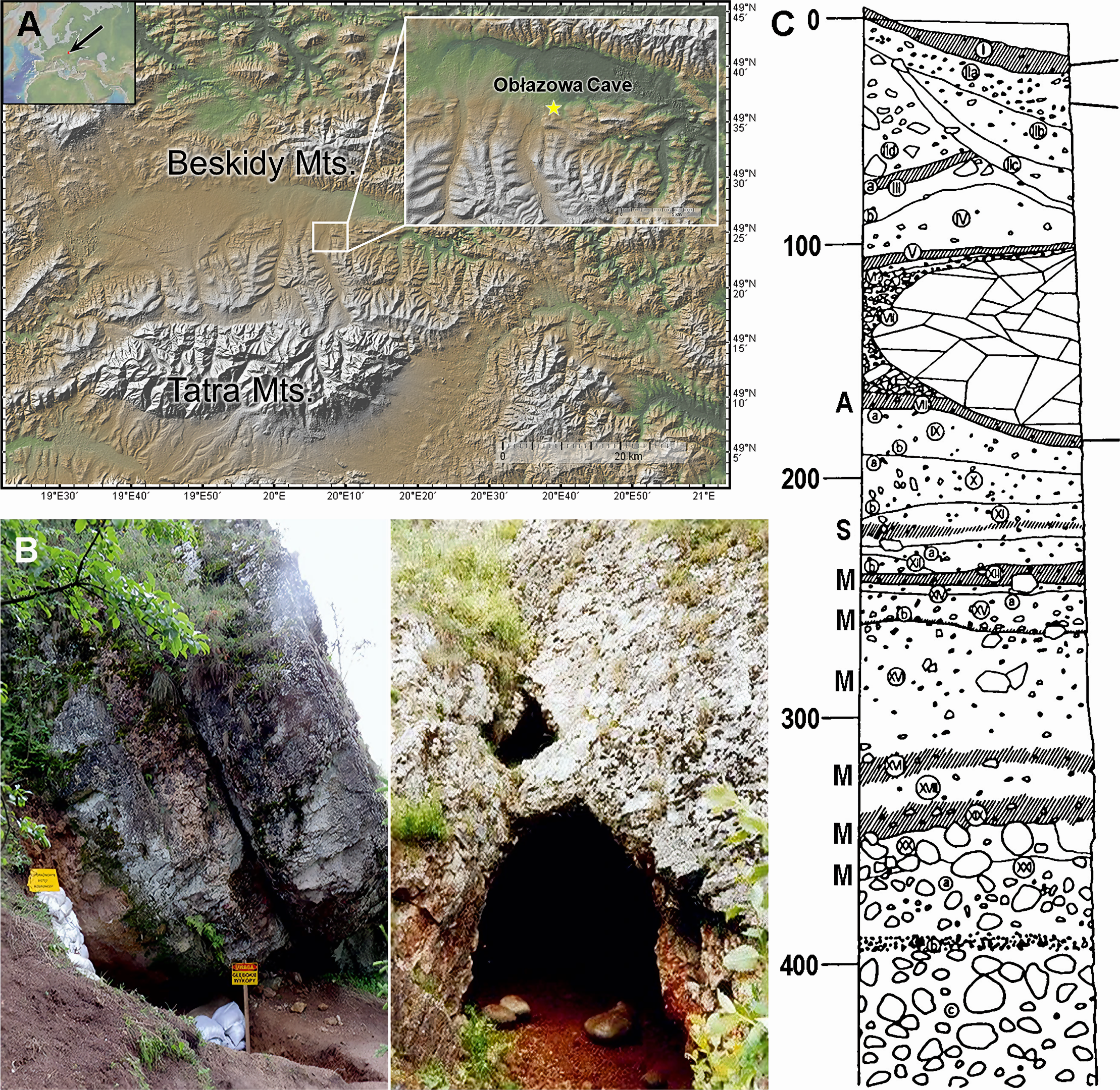 길이 약 72cm(28인치)인 초승달 모양 이 유물은 40년 전 폴란드 남부 오블라조바 동굴에서 발견되었으며 인골, 여우 송곳니로 만든 장신구, 그리고 붉은 황토로 덮인 돌날 도구 등이 함께 발견되었다.