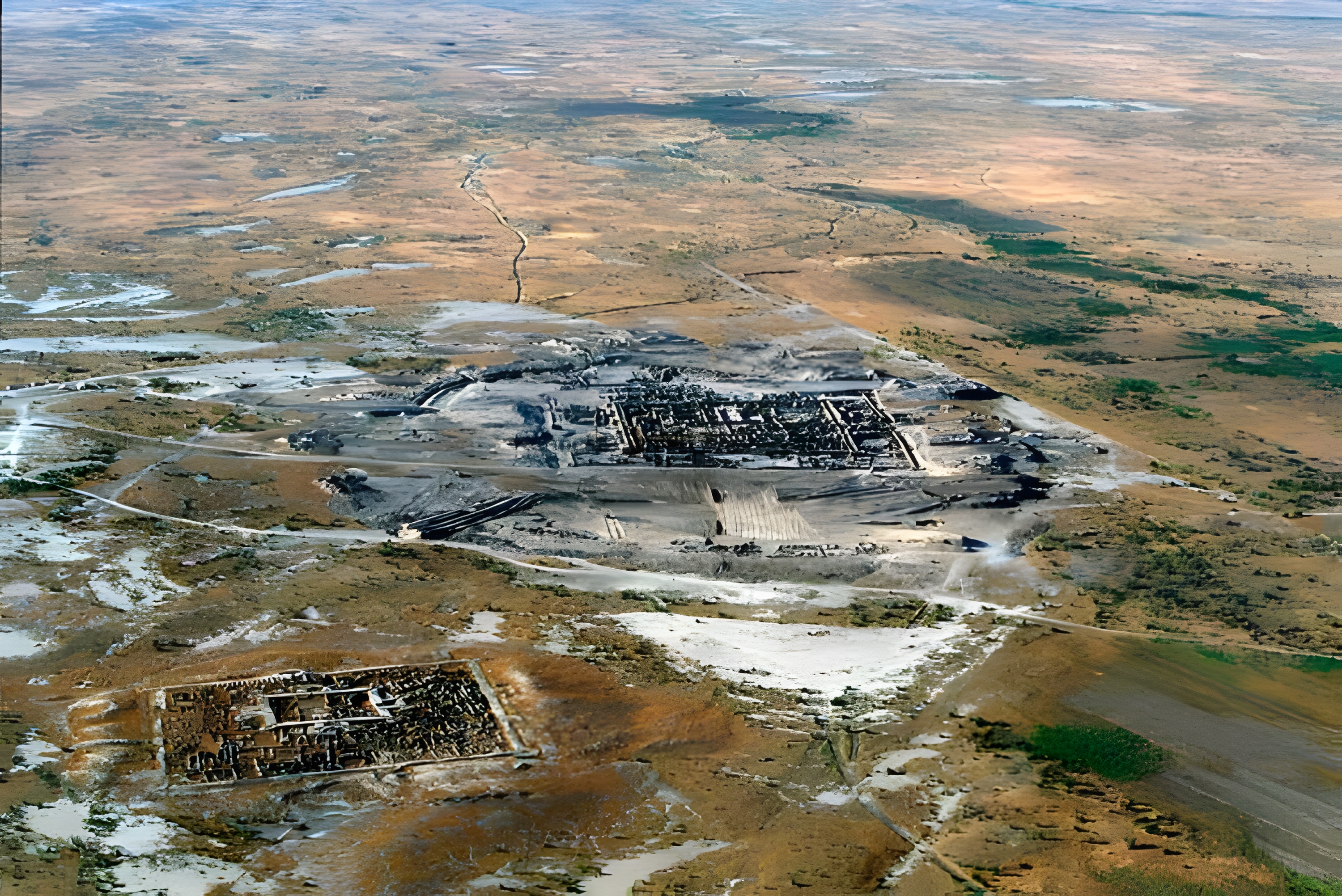 기원전 2400년부터 1900년까지 "기념비적인 궁전Monumental Palace"과 부속 건물, 의식 장소, 많은 사원, "왕실 네크로폴리스Royal Necropolis" 및 다양한 저수지를 포함한다.