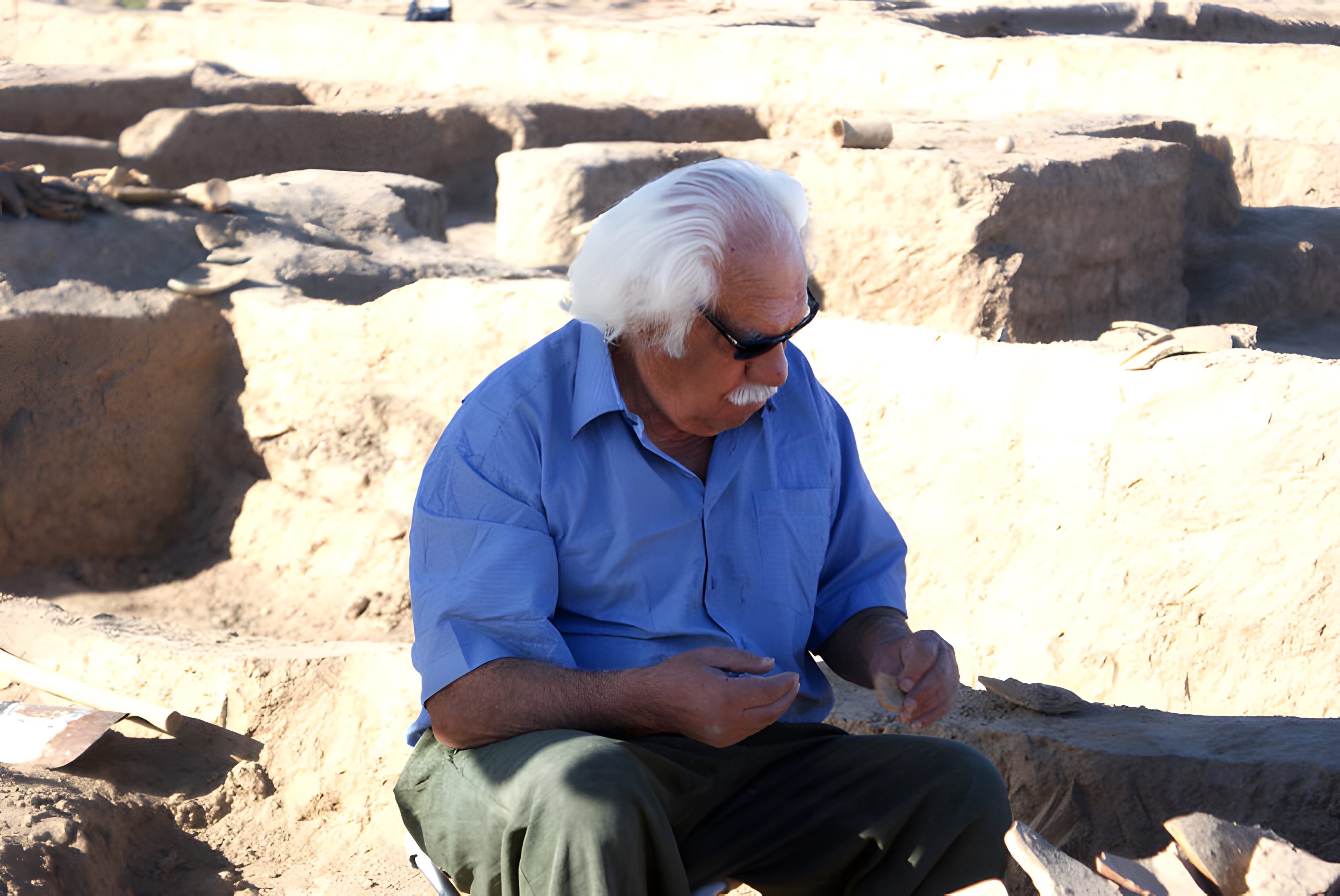 그곳 지표에서 1972년 도자기 파편을 채취한 그는 1974년부터 2013년까지 현장을 발굴했다.