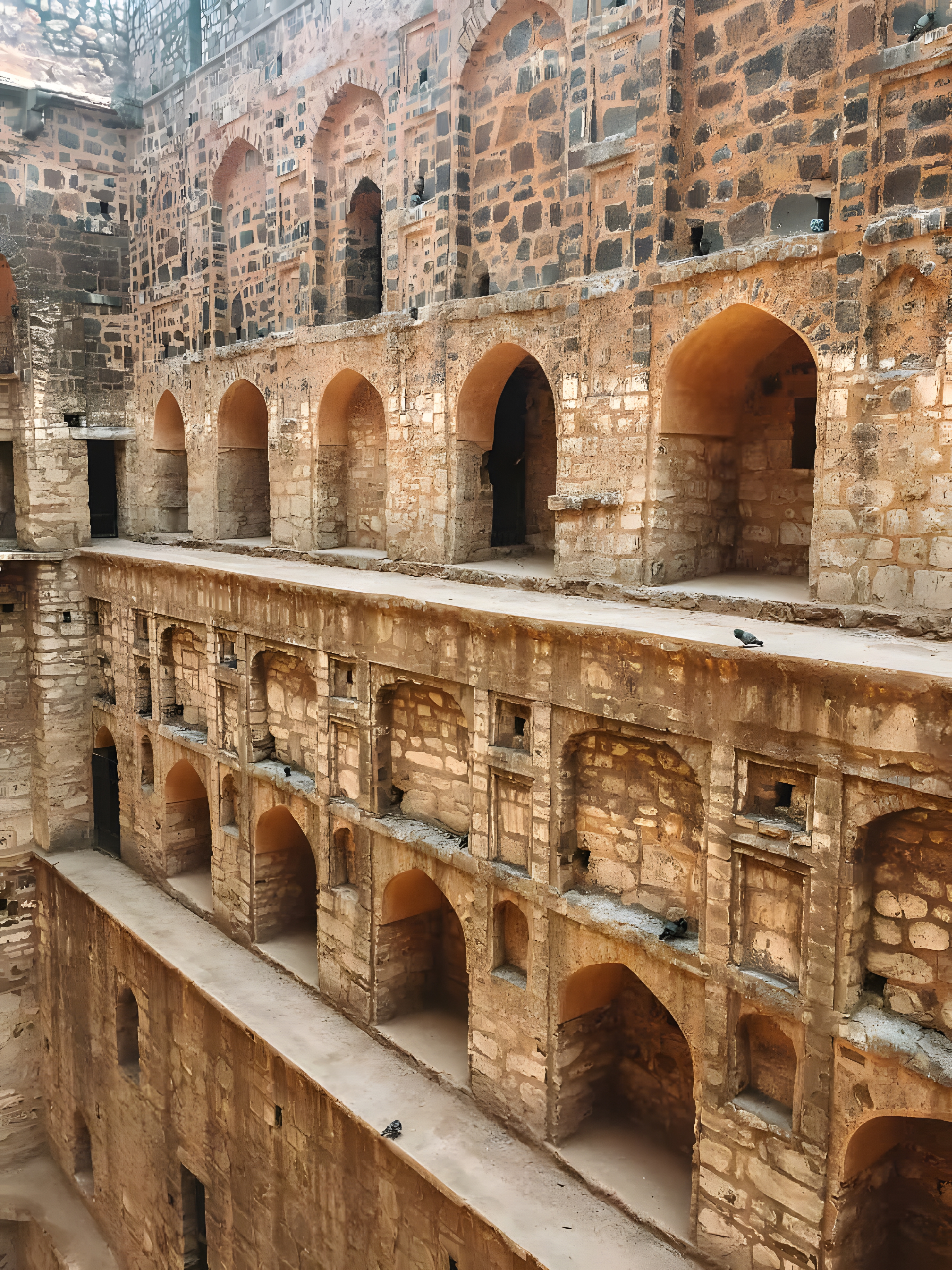 건축 관점에서 이 계단 우물은 앞서 말한 대로 저 시대에 개축되었을 것이며, 그 서쪽으로 매우 명확하게 페르시아 양식을 보이는 작은 삼면 모스크가 있다.