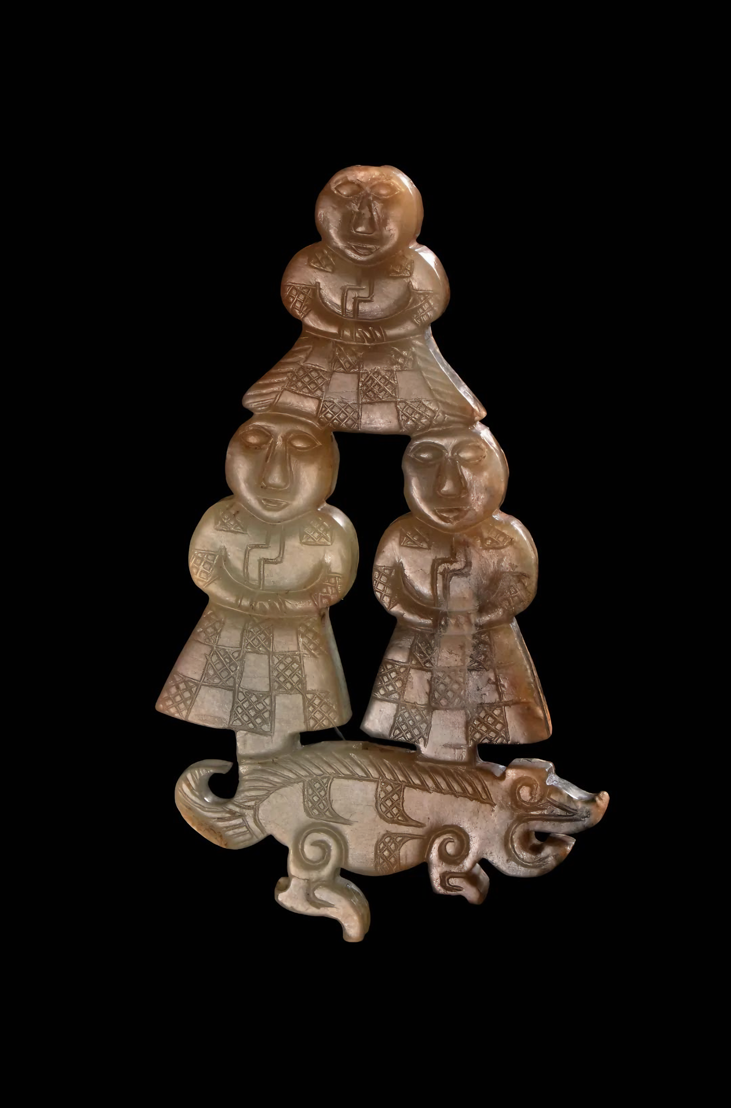 삼인답수옥식三人踏兽玉饰 혹은 삼인답저형옥패三人踏猪形玉佩 등으로 일컫는데