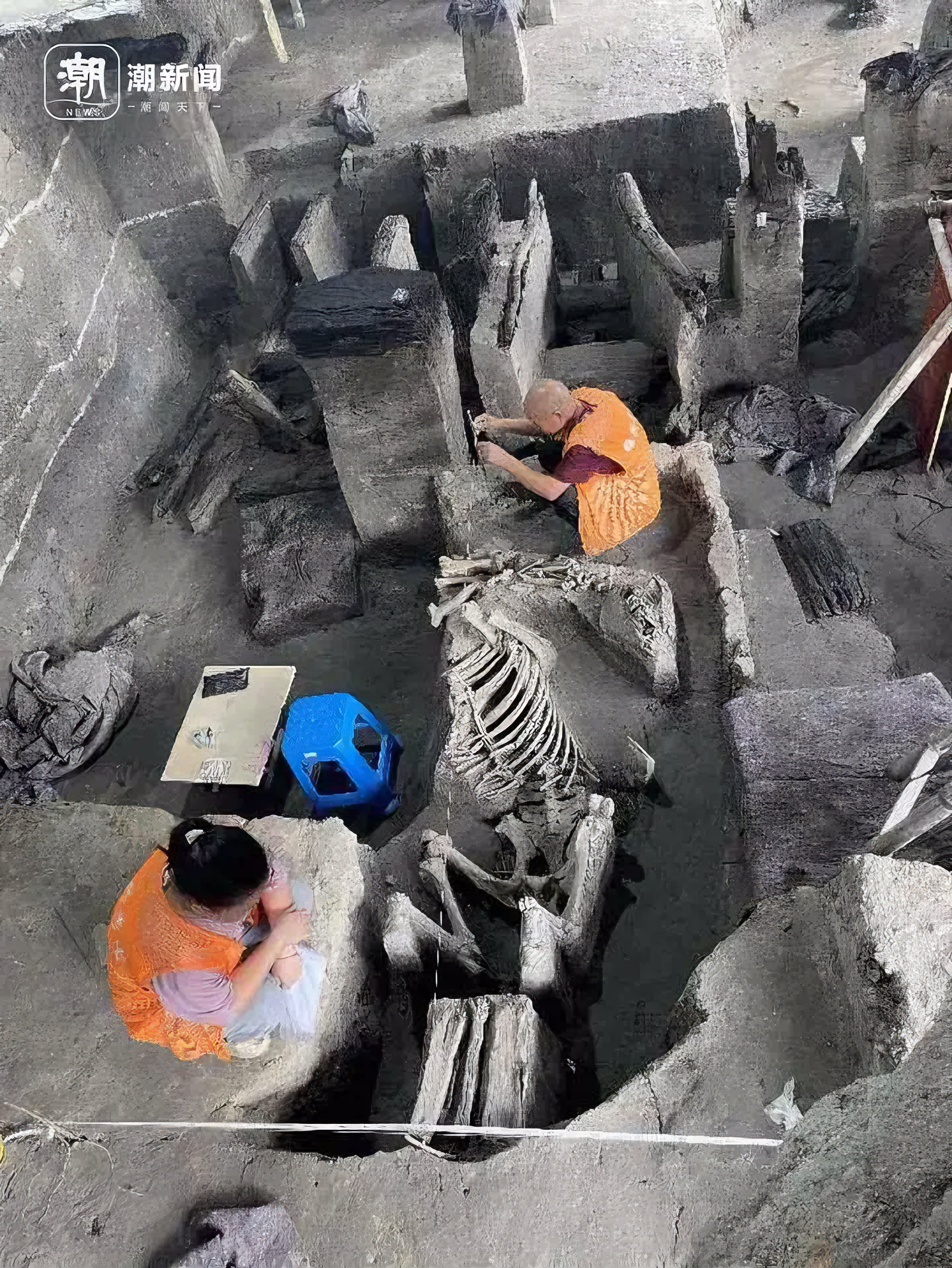 당일 수십 명 고고학자가 지표면을 정리하거나 목조 유적에 대한 보습 작업을 진행했다.