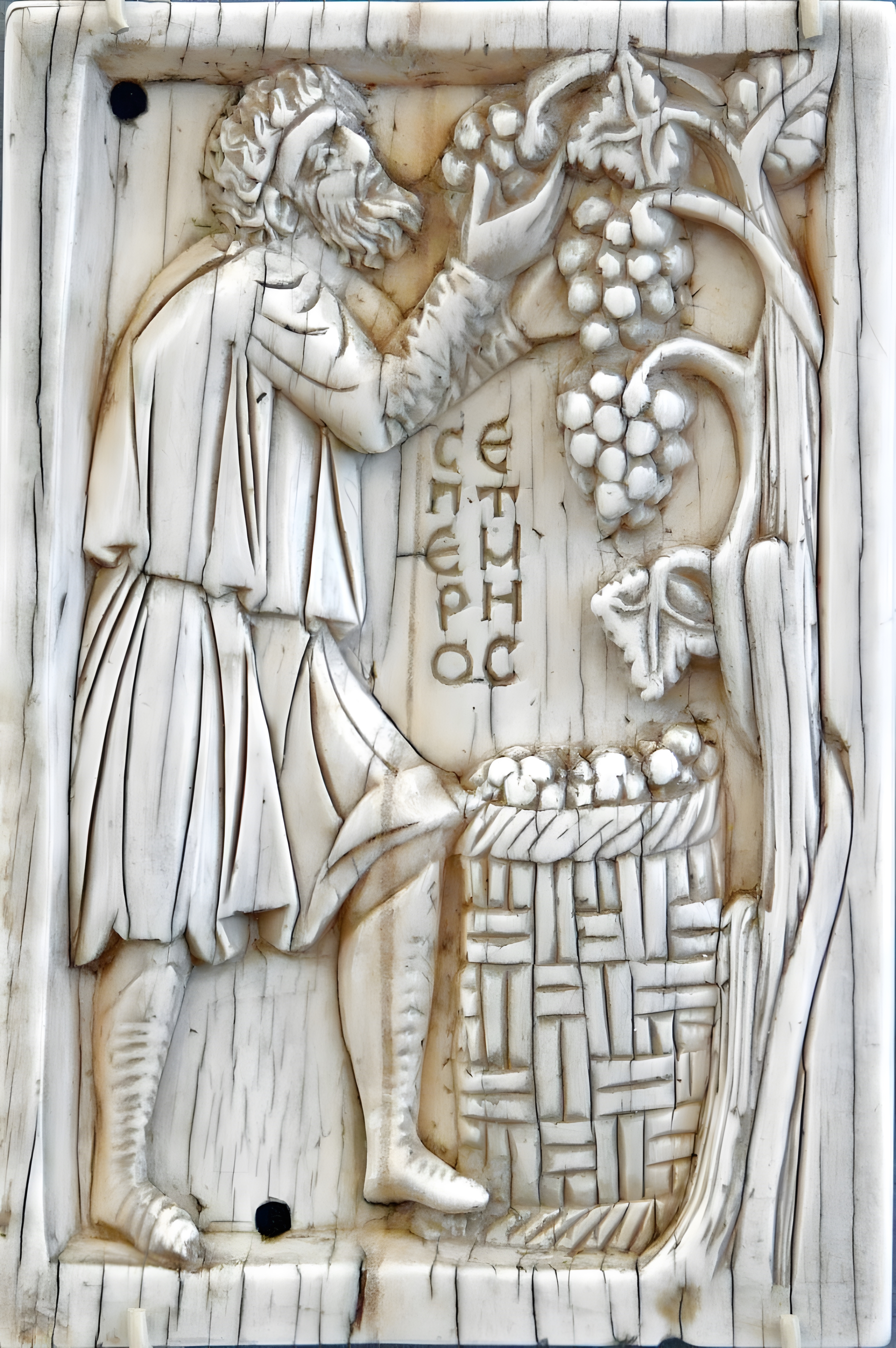 이건 재료가 상아인데 늙수구레한 한 남자가 포도를 따는 장면을 묘사한다.