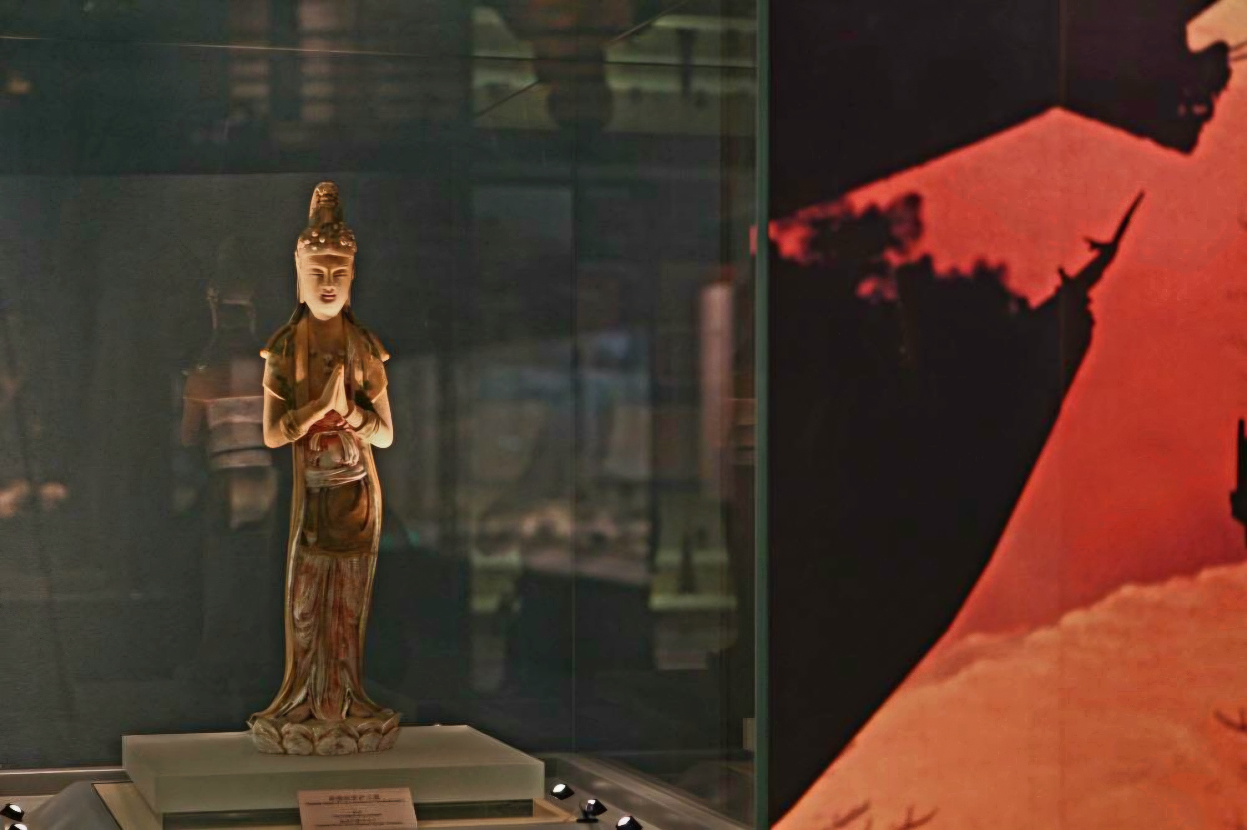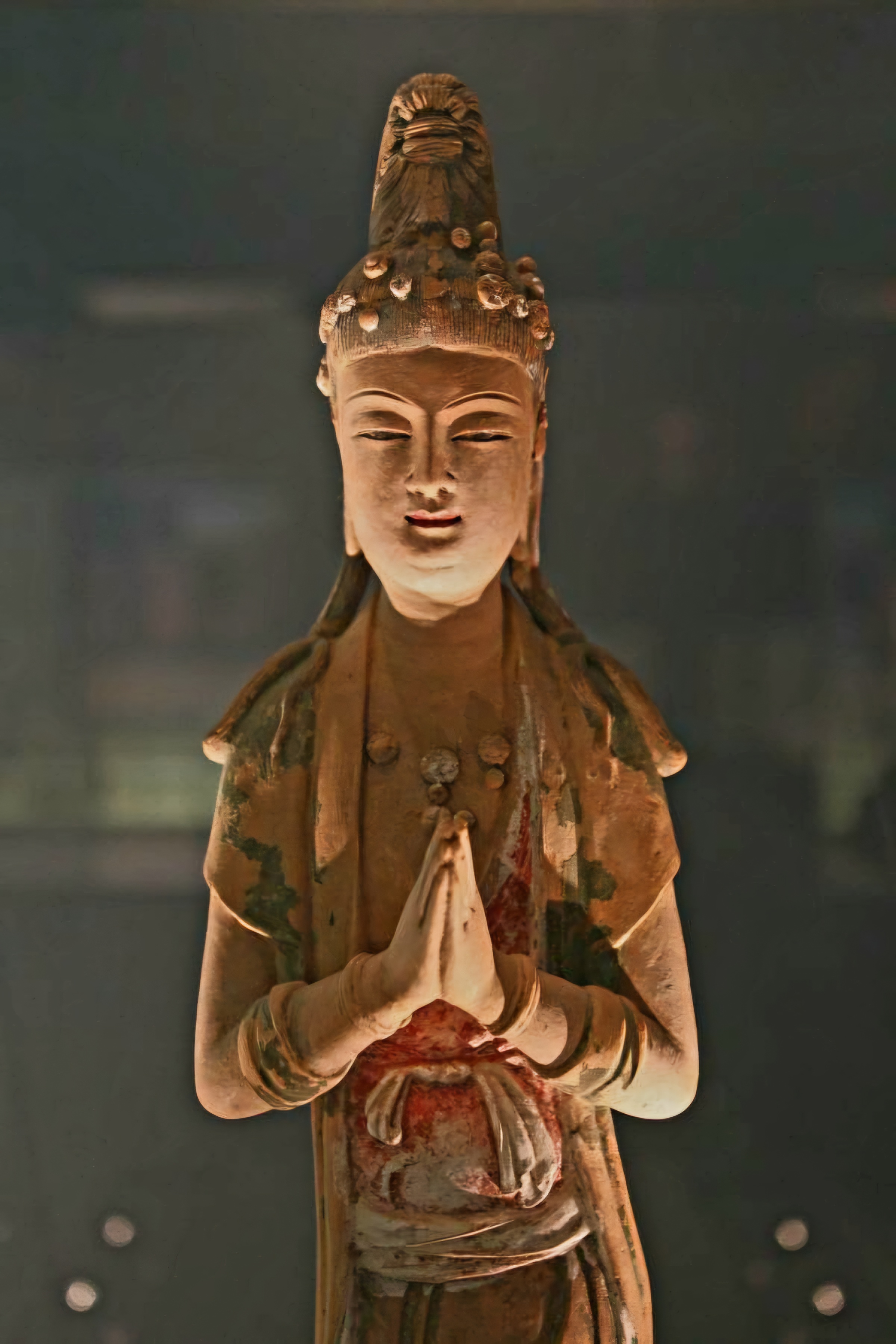 standing statue of colored-sculptured clay bodhisattva