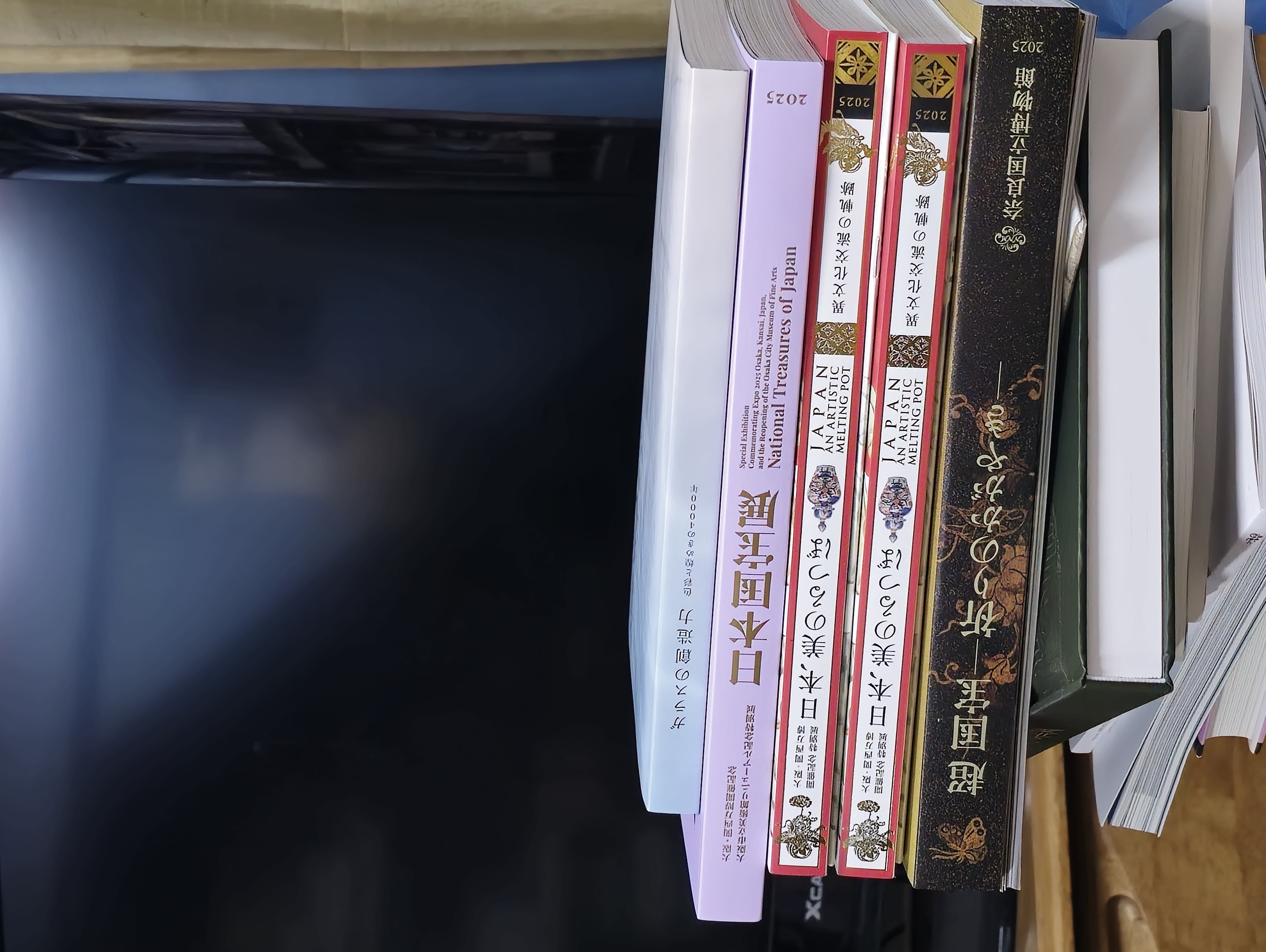 맨 아래 가장 두툼한 것이 나라국립박물관 한창 성황리 개최 중인 블록버스터 전시 초국보超國寶 특별전 도록이다.