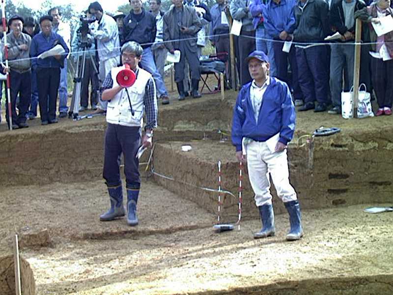 후지무라는 1970년대 중반부터 각지의 유적에서 「구석기 발견」을 계속하고 있었지만, 석기를 사전에 묻는 모습을 2000년(헤이세이 12년) 11월 5일자 「마이니치 신문毎日新聞」조간이 특종 보도하면서 부정이 발각되었다.