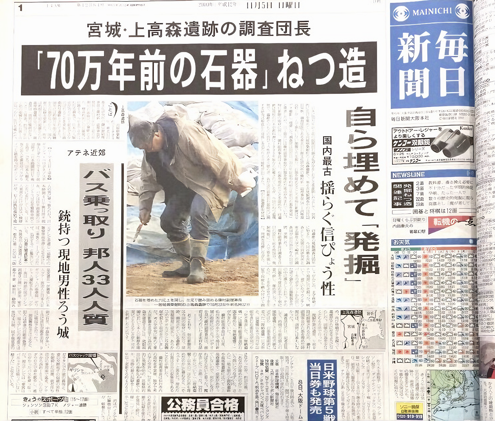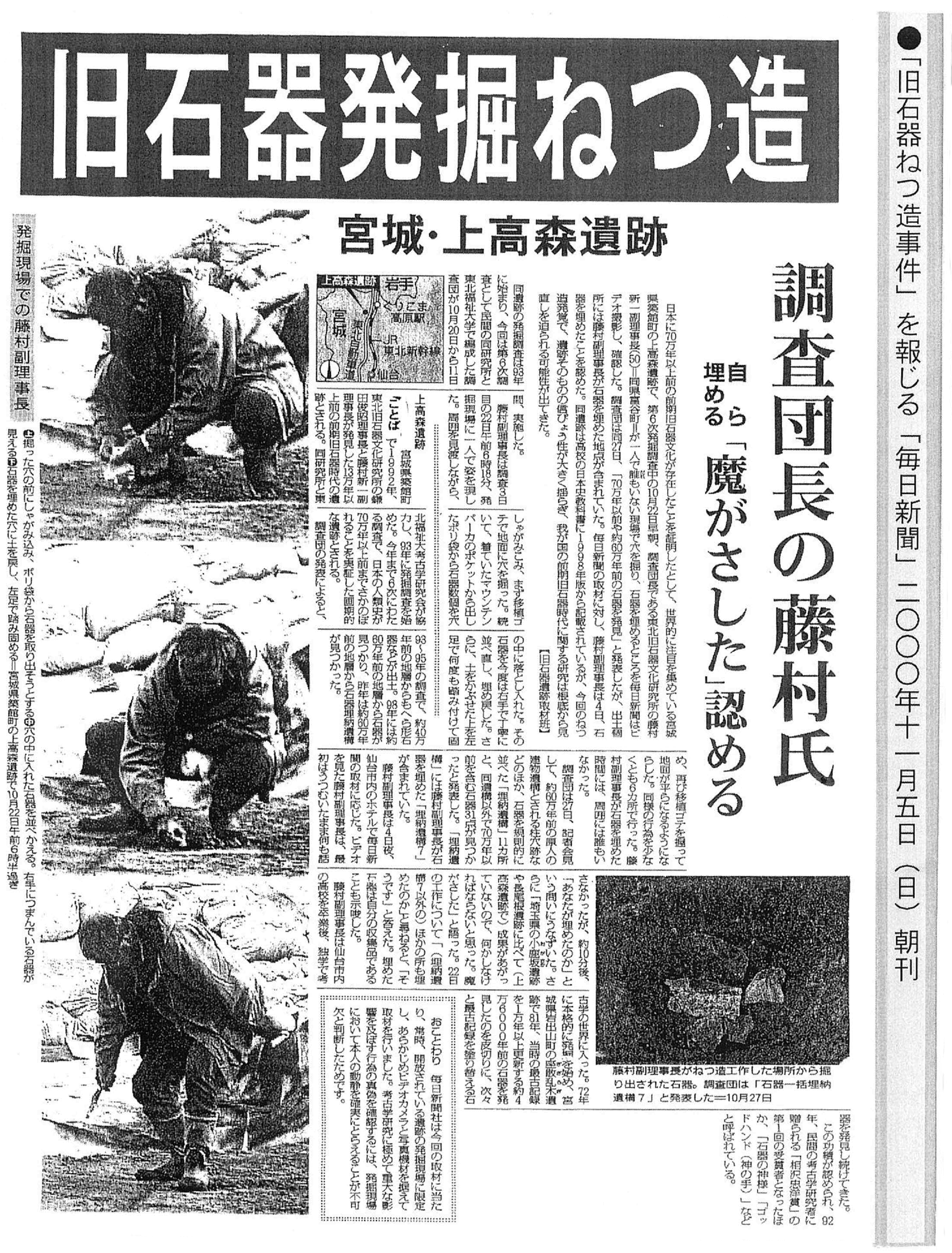 2000 毎日新聞報道、上高森遺跡第6次、総進不動坂遺跡第3次発掘調査での捏造発覚。