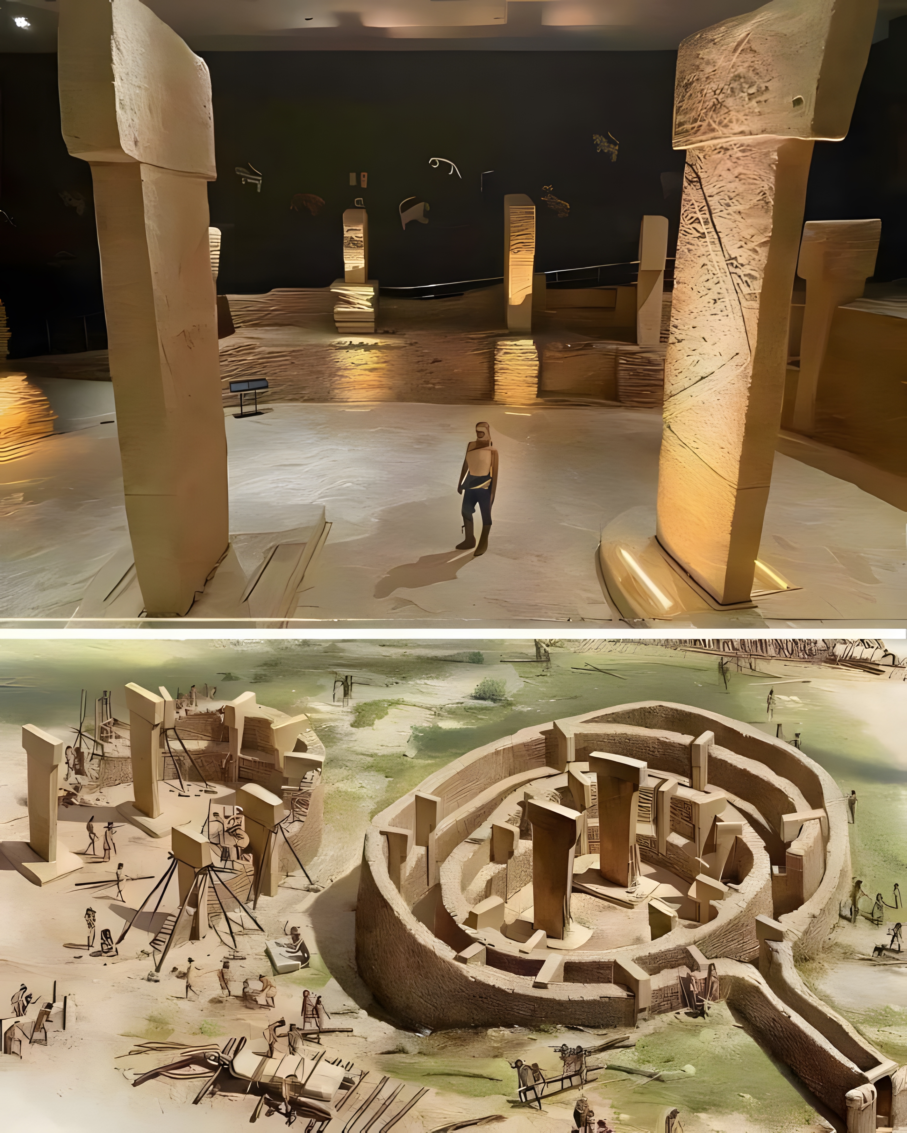 튀르키예 동부 아나톨리아 소재 그 유명한 신석기시대 초창기 신전으로 생각하는 괴베클리 테페Göbekli Tepe 유적 복원 상상도다.