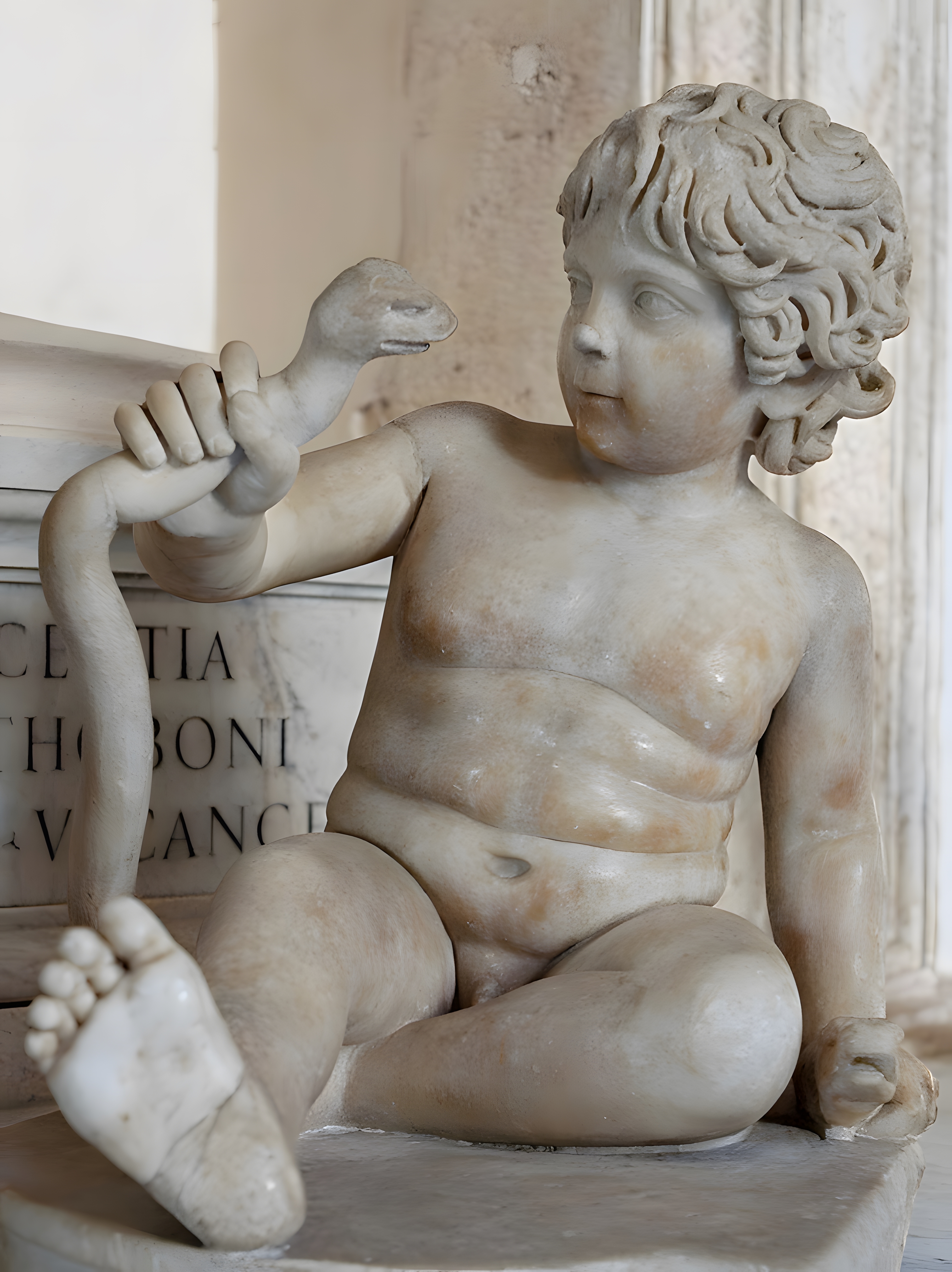 암튼 저 조각은 땅에 주저앉은 채 두 마리 뱀[분명 한 마리 아닌가?]과 사투를 벌이는 한 아이를 보여준다는 것으로 어린 헤라클레스의 삶에서 영감을 얻었다 한다.