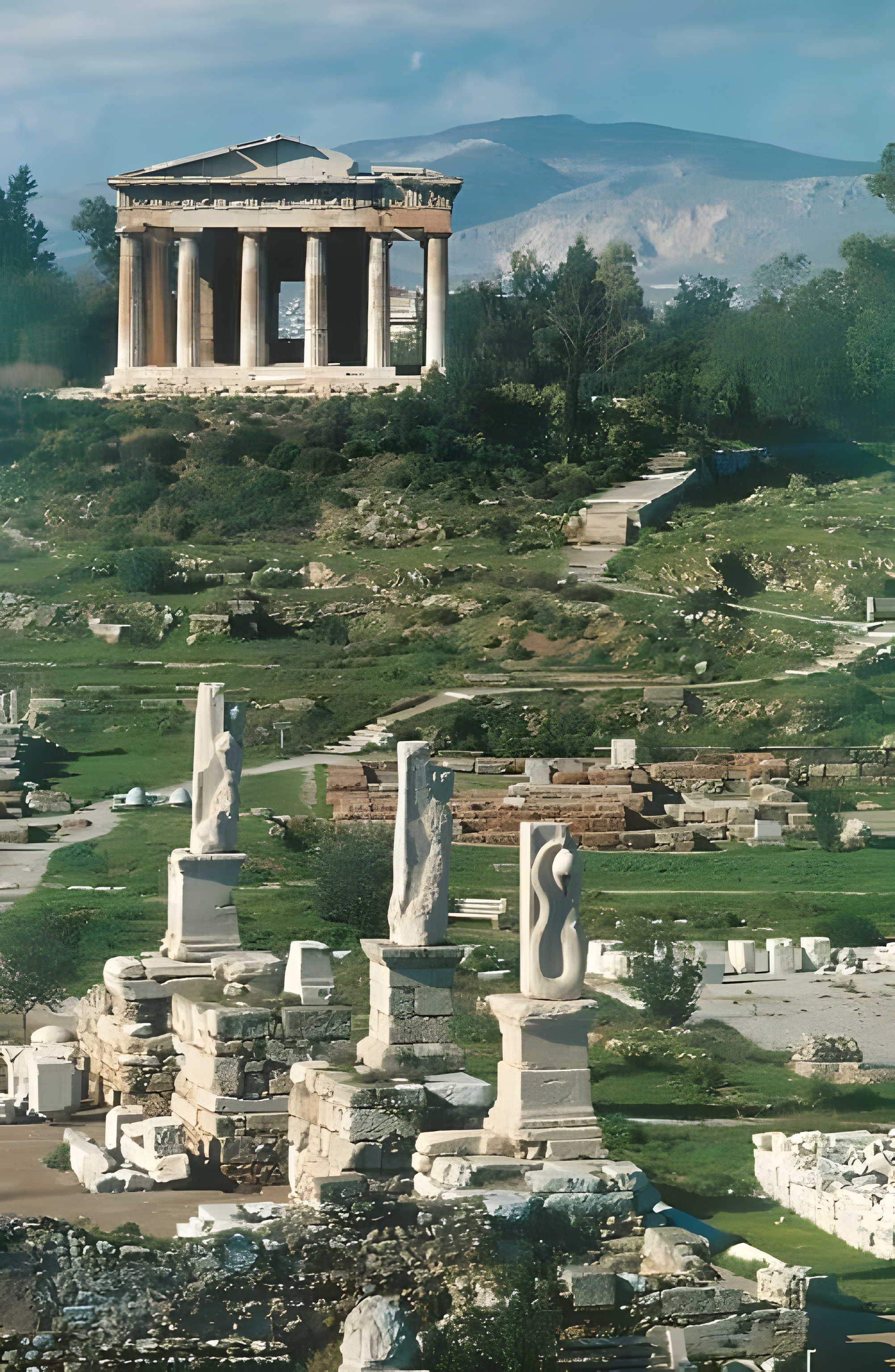 아테네 아고라Agora 북서쪽, 아고라이오스 콜로노스 언덕 Agoraios Kolonos hill 꼭대기에 위치한 헤파이스토스 신전은 잘 보존된 그리스 건물이다.