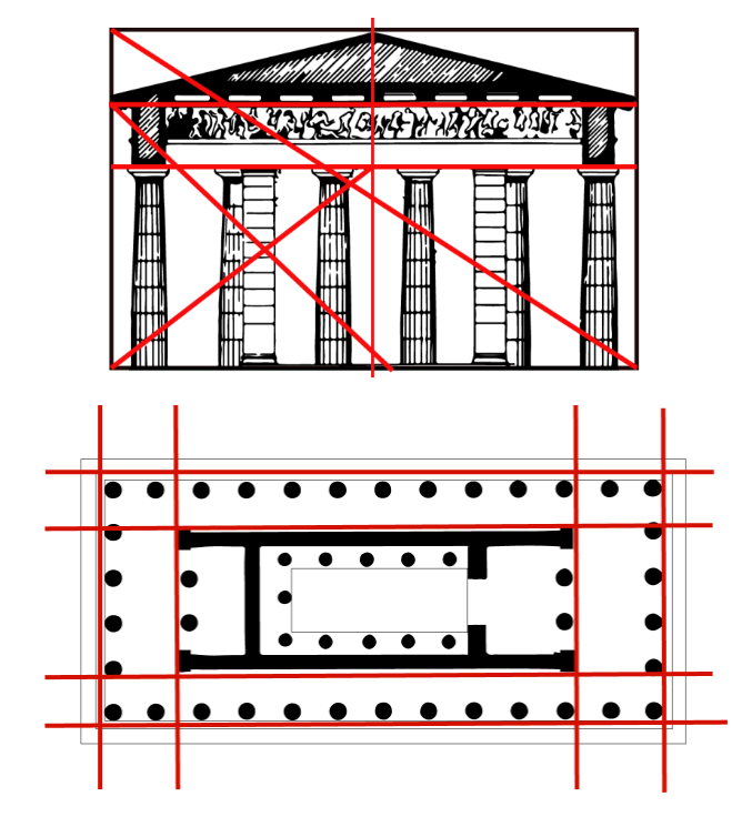이 사원의 경우 기본 구조에 그리스 건축 기술을 모두 사용했기 때문에 거의 동일한 기하학적 특성을 지닌니다.