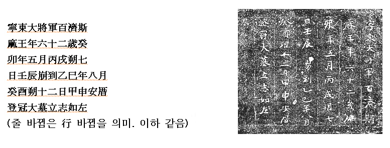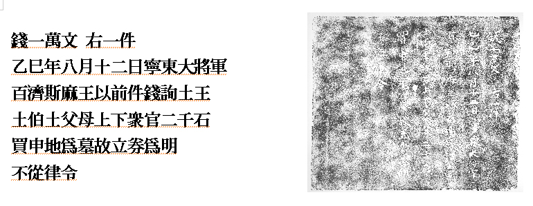 내가 무령왕릉에서 몇 가지 난제로 꼽은 것이 있다. 첫째, 묘권墓券과 관련해 우선 그에 보이는 '등관대묘登冠大墓' 문제를 어케 보느냐였고, 다음으로 '입지여좌立志如左'의 '左좌'를 어케 보느