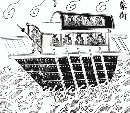 주유가 조조 백만대군을 화공으로 적벽에서 불살라 버리고 대승을 거둘 때 모습에선 제갈량이 오버랩하지만 백우선 저어 바람 일으키는 제갈량은 실은 훗날 본격화하는 모티브다.