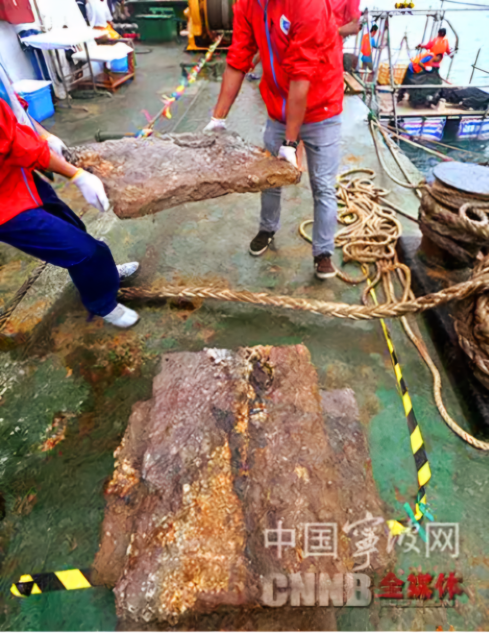 이 과정에서 저 선박은 어산열도 소백초 북쪽 수심 24m 지점에서 대량의 석재를 발견하고선 조사를 계속해 저 침몰선을 찾았다.