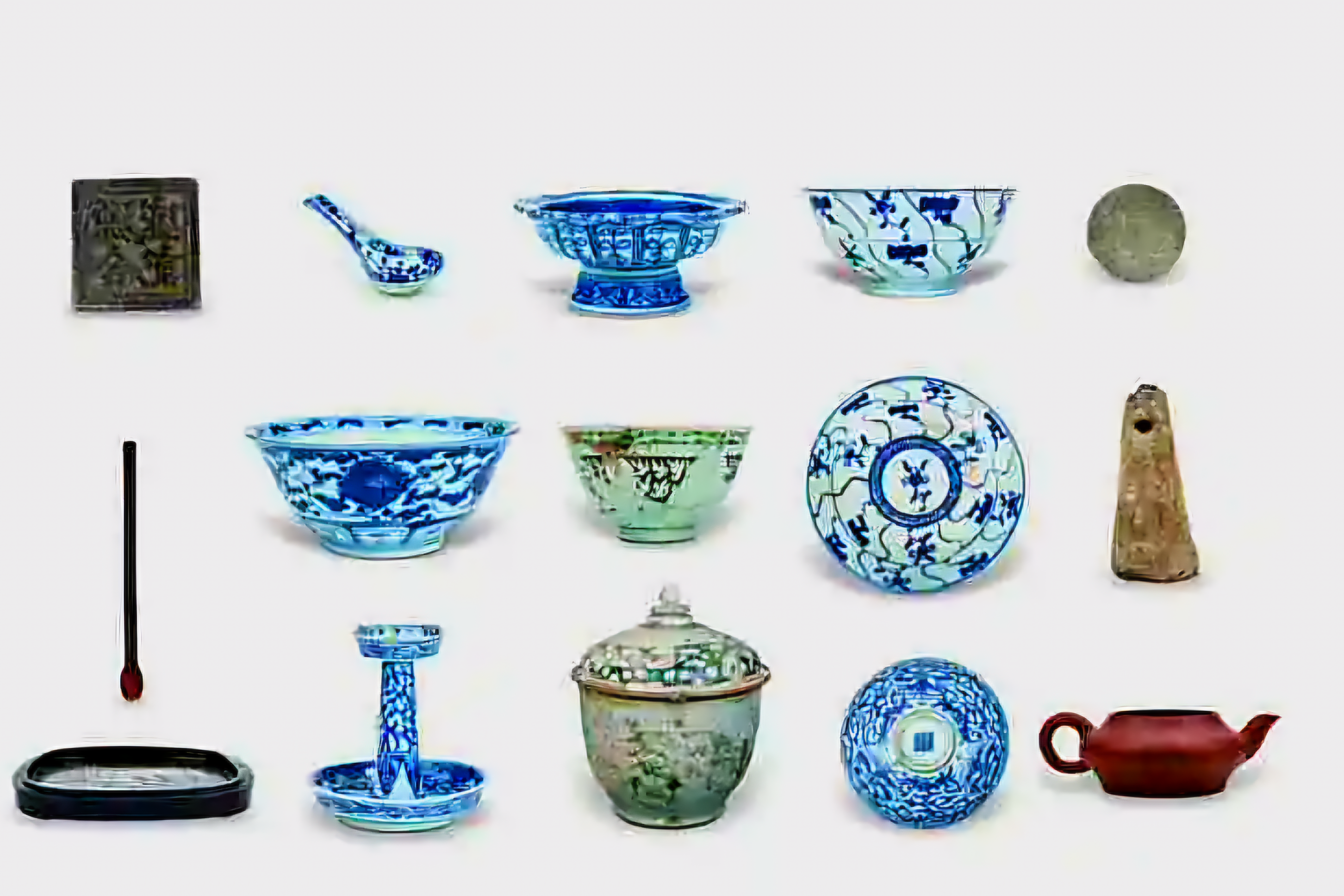 이 침몰선 출수 기물은 1천64건이고 청화자青花瓷 위주라 이 자기는 도합 592건이다.