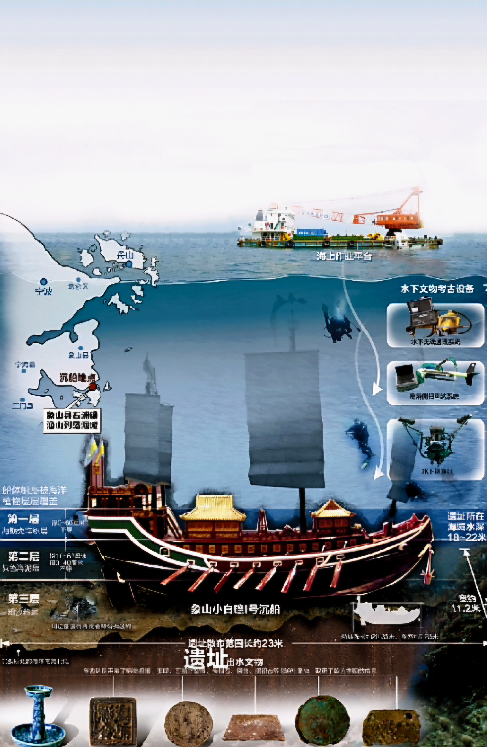 2008년 10월 중국국가박물관中國國家博物館 수하고고중심水下考古研究中心과 영파시문물고고연구소寧波市文物考古研究所는 영파 해역 수중 탐사를 실시했다.