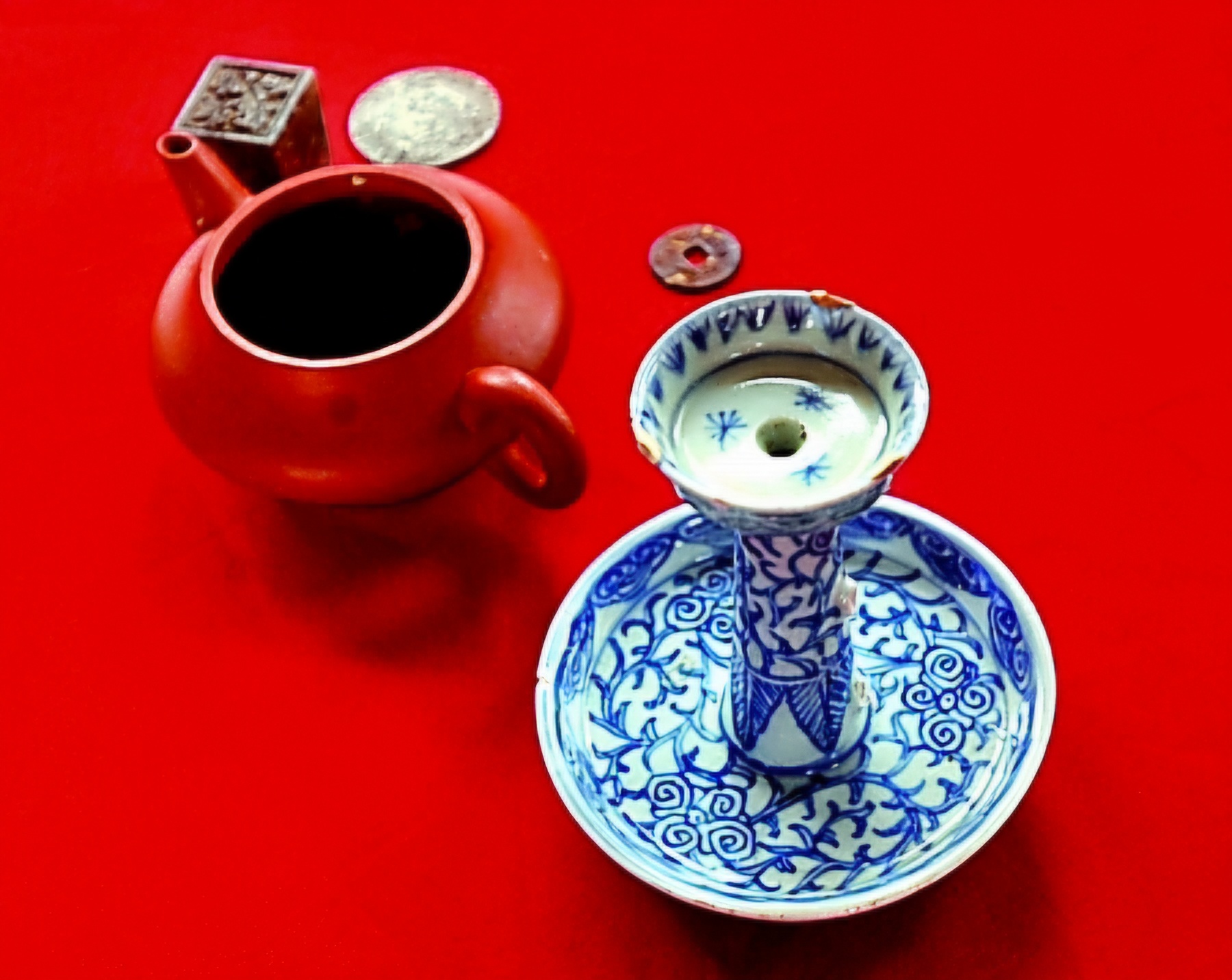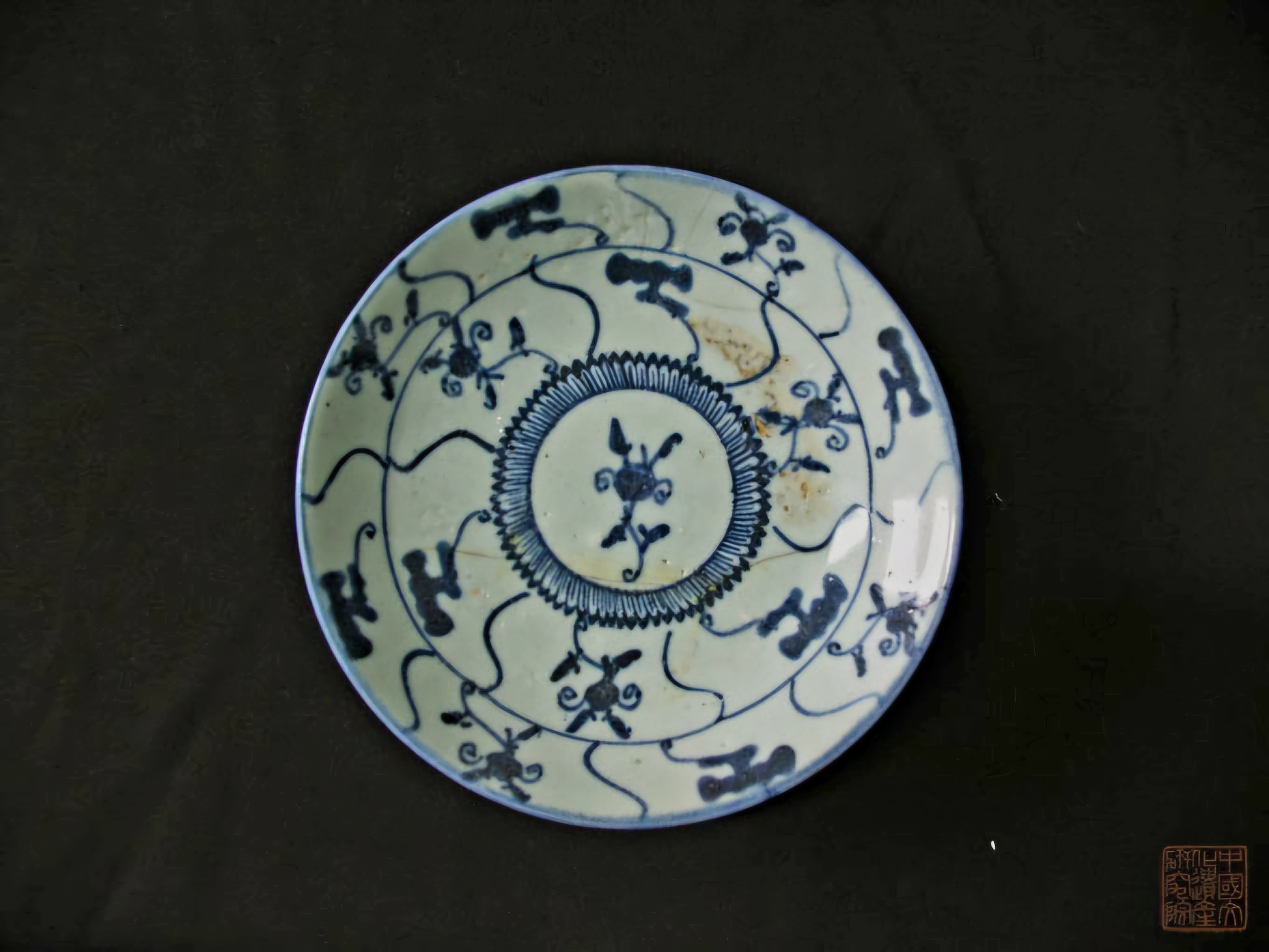 켜켜이 쌓은 완전한 형태의 청화자靑花瓷와 석판石板은 당연히 선박 적재물이며 인장印章은 당연히 상호商號 인신印信일 것이며 다국화폐가 발견되 것으로 봐서 이 선박은 당연히 상선商船으로 본다.