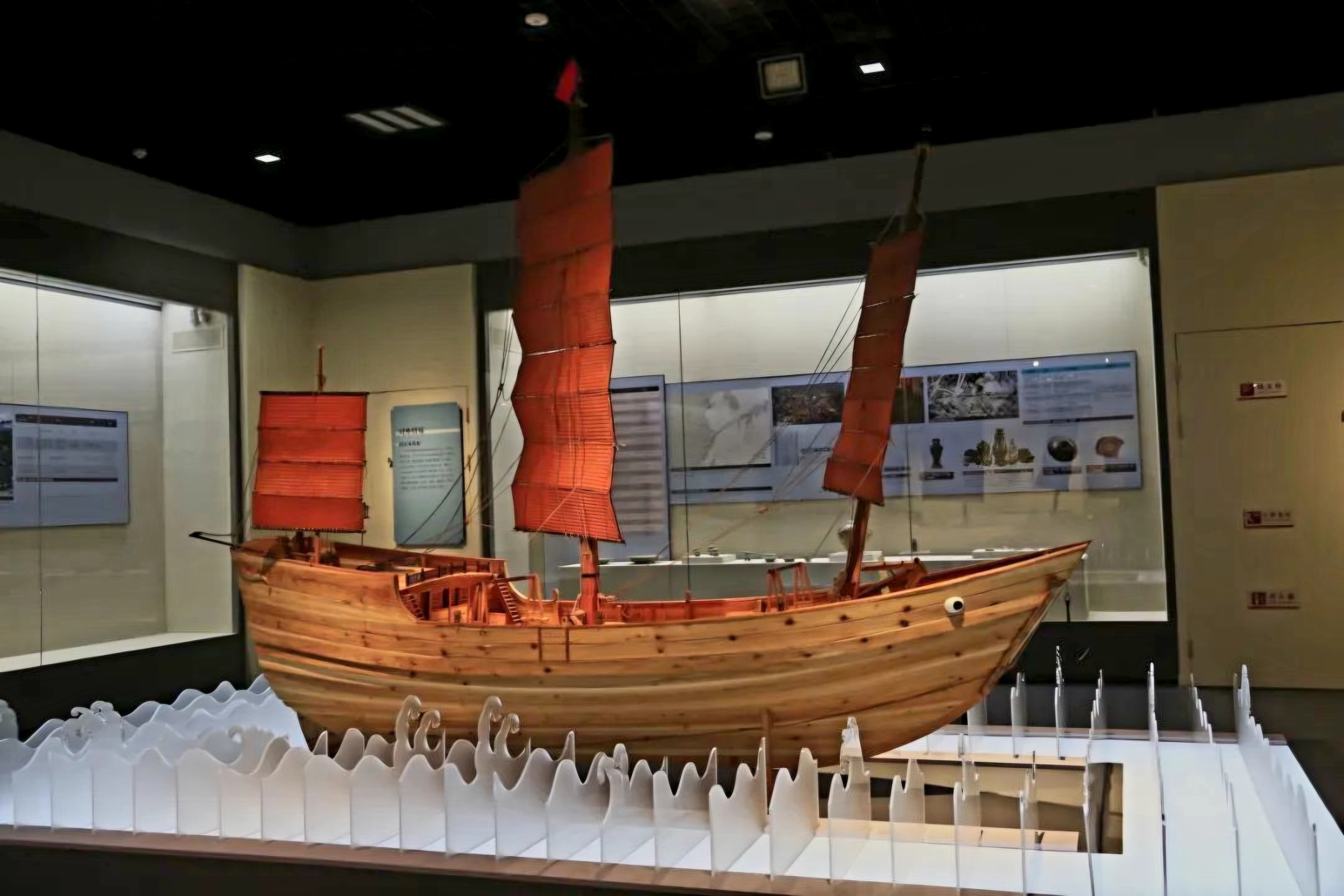 2014년 7월, 난파선 부재들은 영파기지寧波基地 난파선수복전시실沉船修復展示室로 옮겨져 전시가 이뤄지고 탈염脫鹽·탈수脫水·건조乾燥 등 처리를 진행했다.