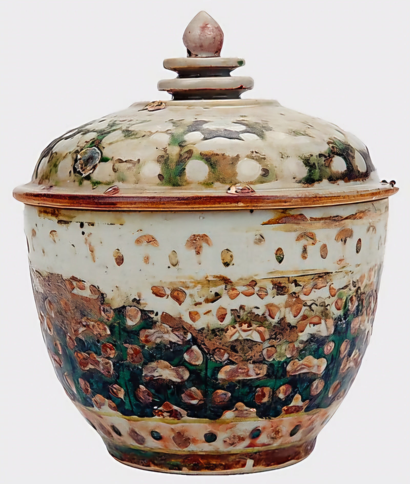 44건 오채자五彩瓷는 완碗 3건·관罐 7건과 개蓋 34건을 포함하며, 백태白胎에 녹綠·흑黑·홍紅·황색黃色을 띠지만 해수 침식으로 탈색이 심하다.