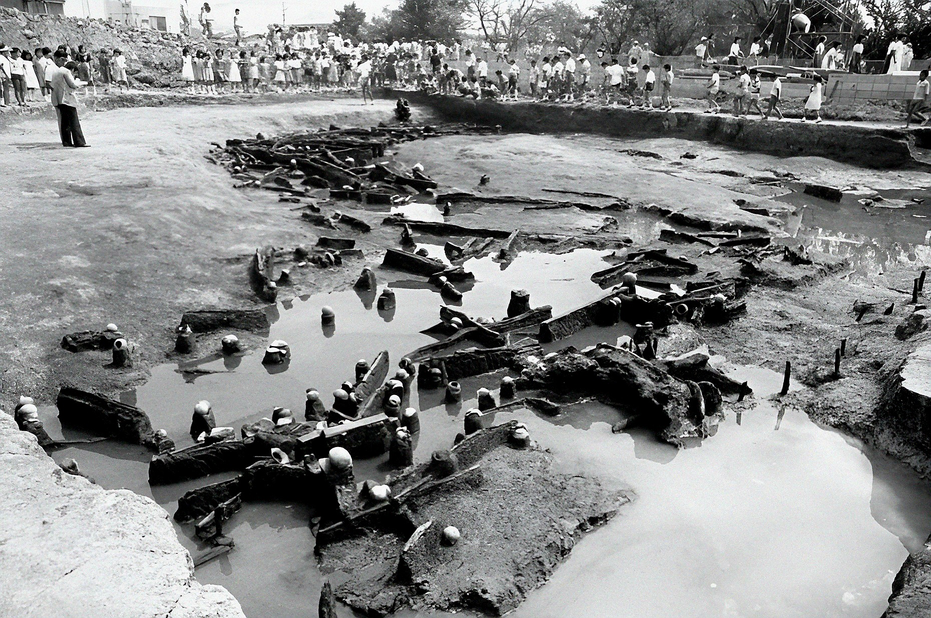 1978년(쇼와 53년)에는 야요이 I층(야요이시대 전기)보다 아래인 조몬시대 말기 토층에서 대구획 논터와 목제 농기구, 돌칼 등도 출토되어 용수로에 설치된 우물 井堰 등의 관개시설 灌漑施設 이 확인되었다.