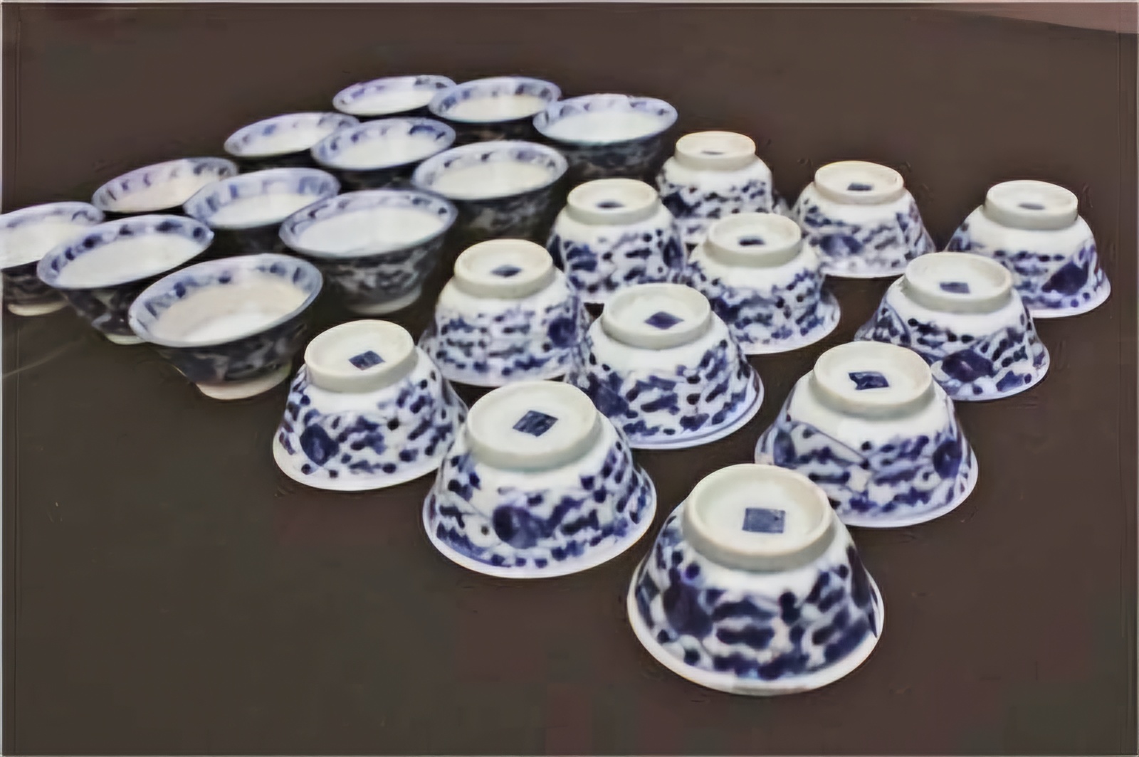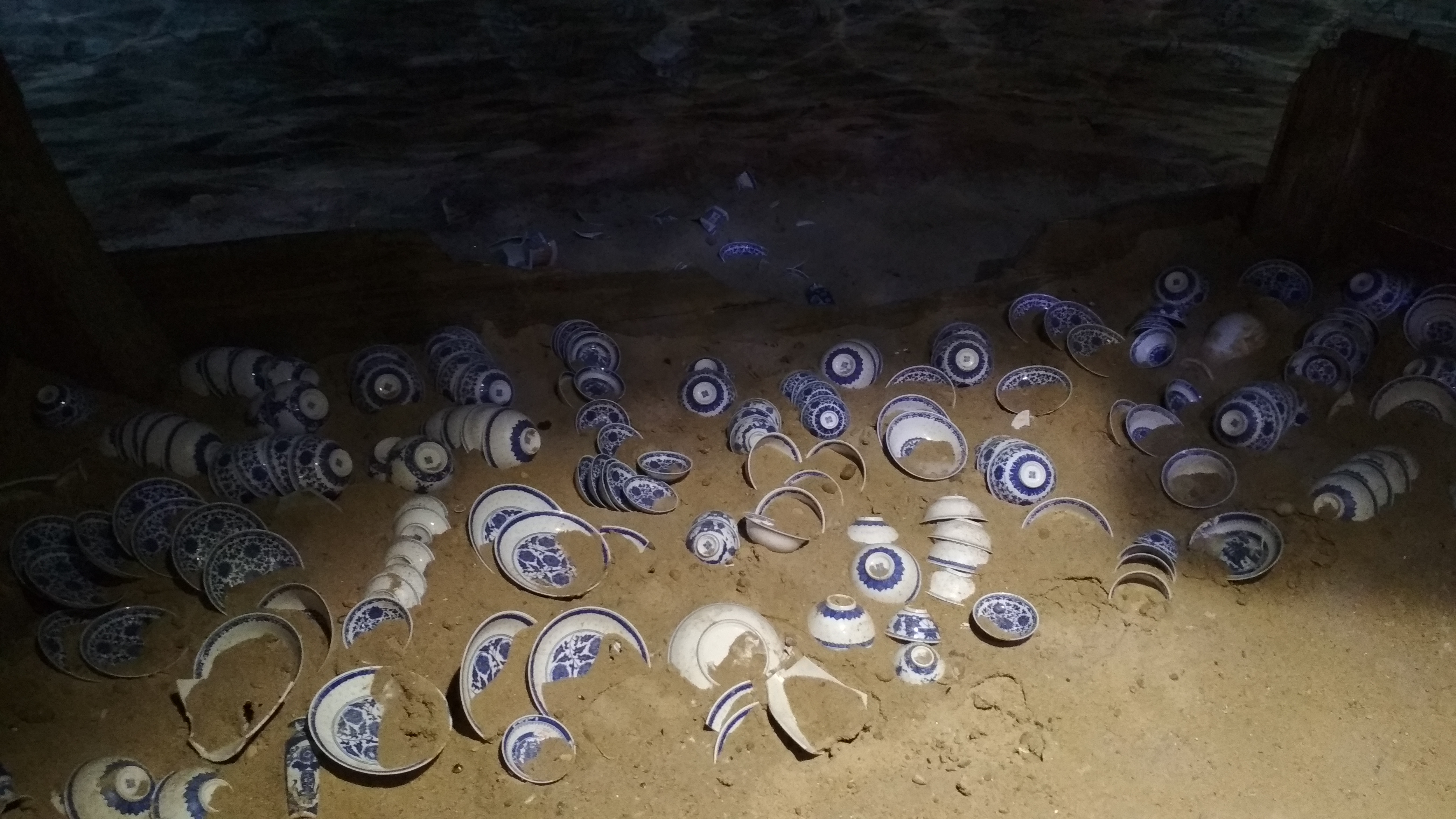 1만7천 점 이상을 헤아리는 도자기가 수습됐으니 개중 1만 건이 청화자青花瓷라, 만든 시기는 청조清朝 강희황제康熙皇帝(재위 1654~1722) 시절 어간으로 본다.