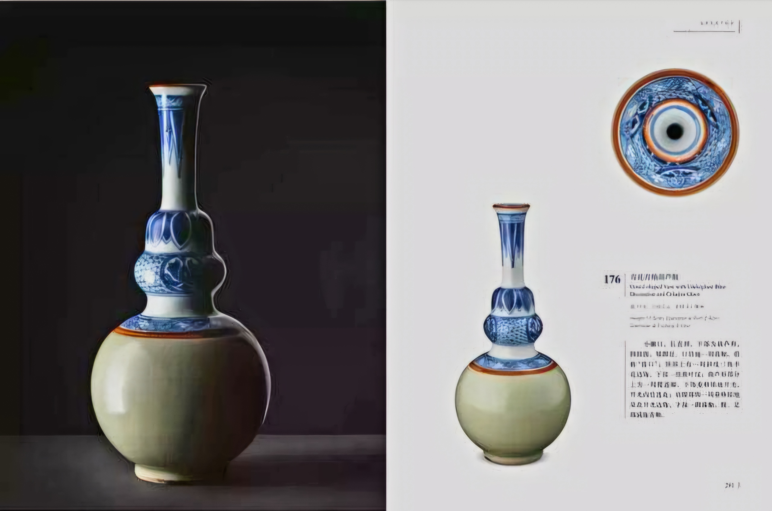 1만7천 점 이상을 헤아리는 도자기가 수습됐으니 개중 1만 건이 청화자青花瓷라, 만든 시기는 청조清朝 강희황제康熙皇帝(재위 1654~1722) 시절 어간으로 본다.