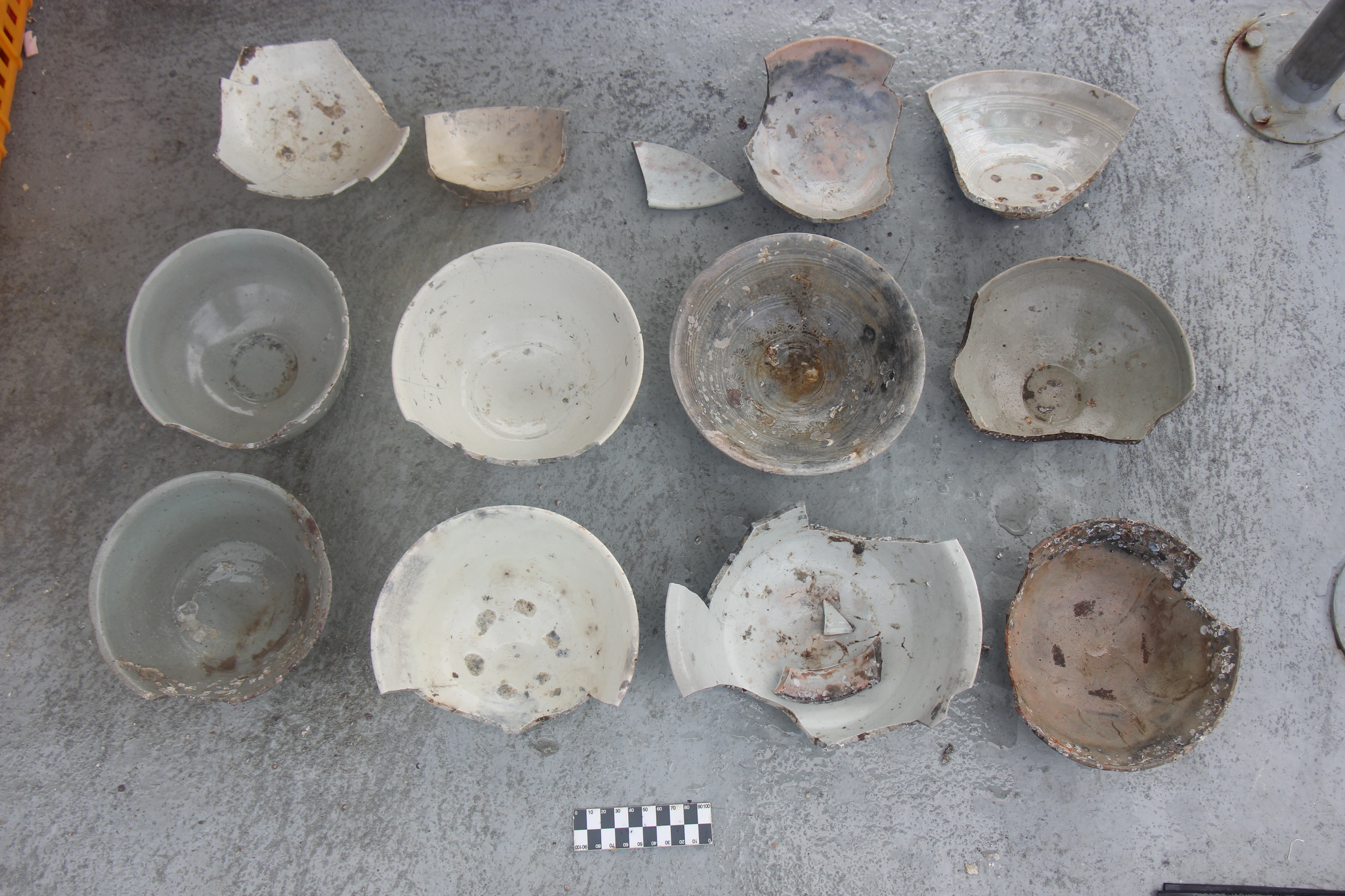 高麗青磁のうち81点は器と皿が重ねられた形で確認された。 貨物で船積みして船が難破し、そのまま沈んだ遺物と推定された。