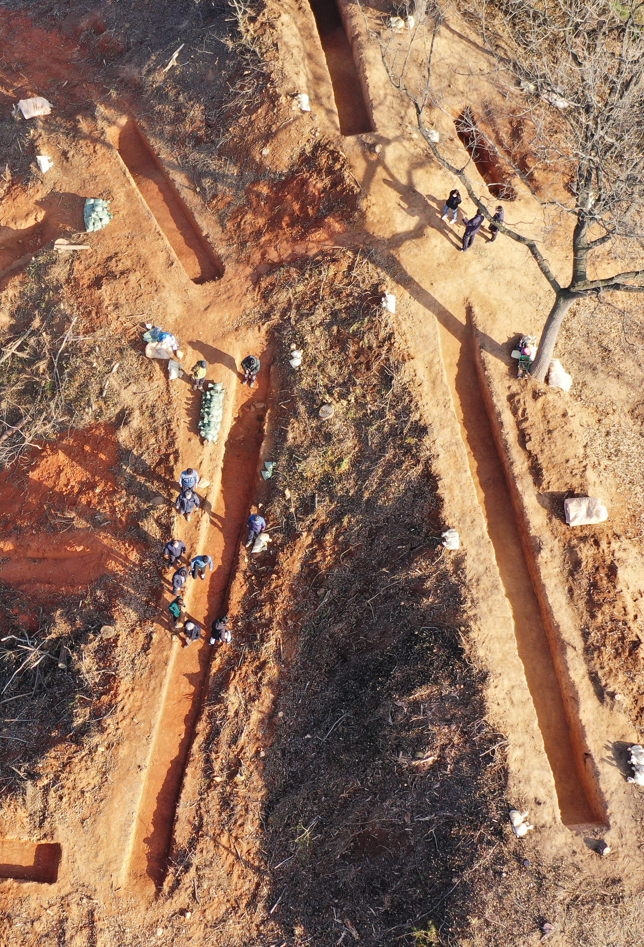 昨年12月、高速道路工事中に発見された同遺跡は、遺体を埋める墳丘の周辺は丸く積み上げ、前方には四角形の壇を設けた形をしている。