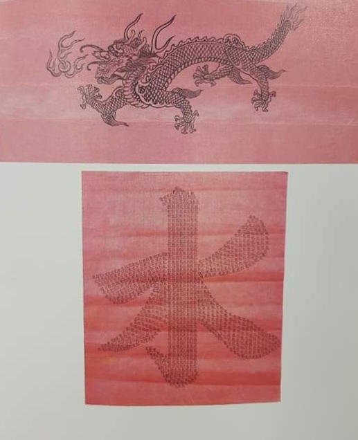 경복궁에서 출토한 조선후기 용 그림, 그리고 용 글자 도안 水자는 용이 물을 관장하는 신이기에 화재 방지라는 염원을 담았다.