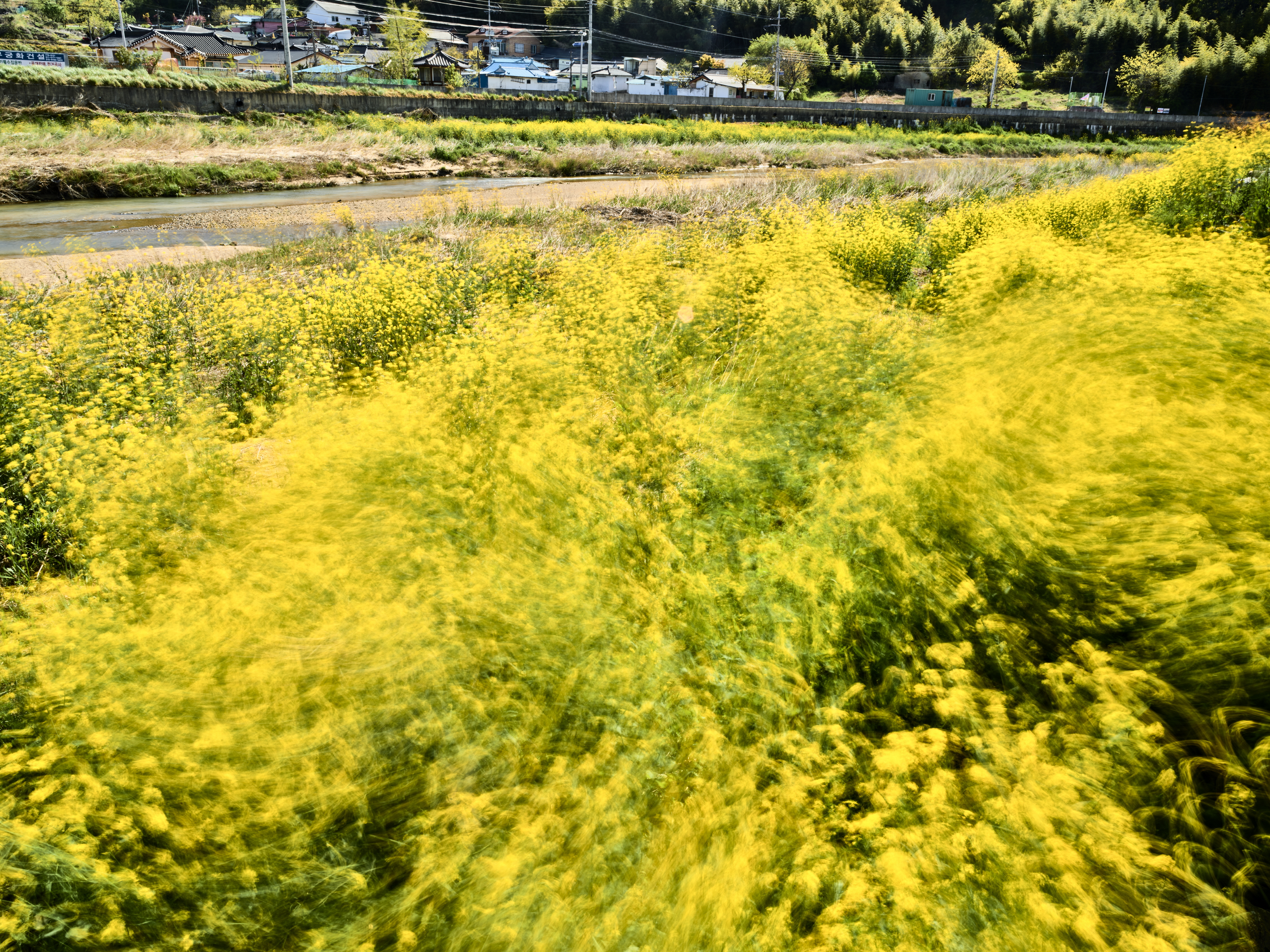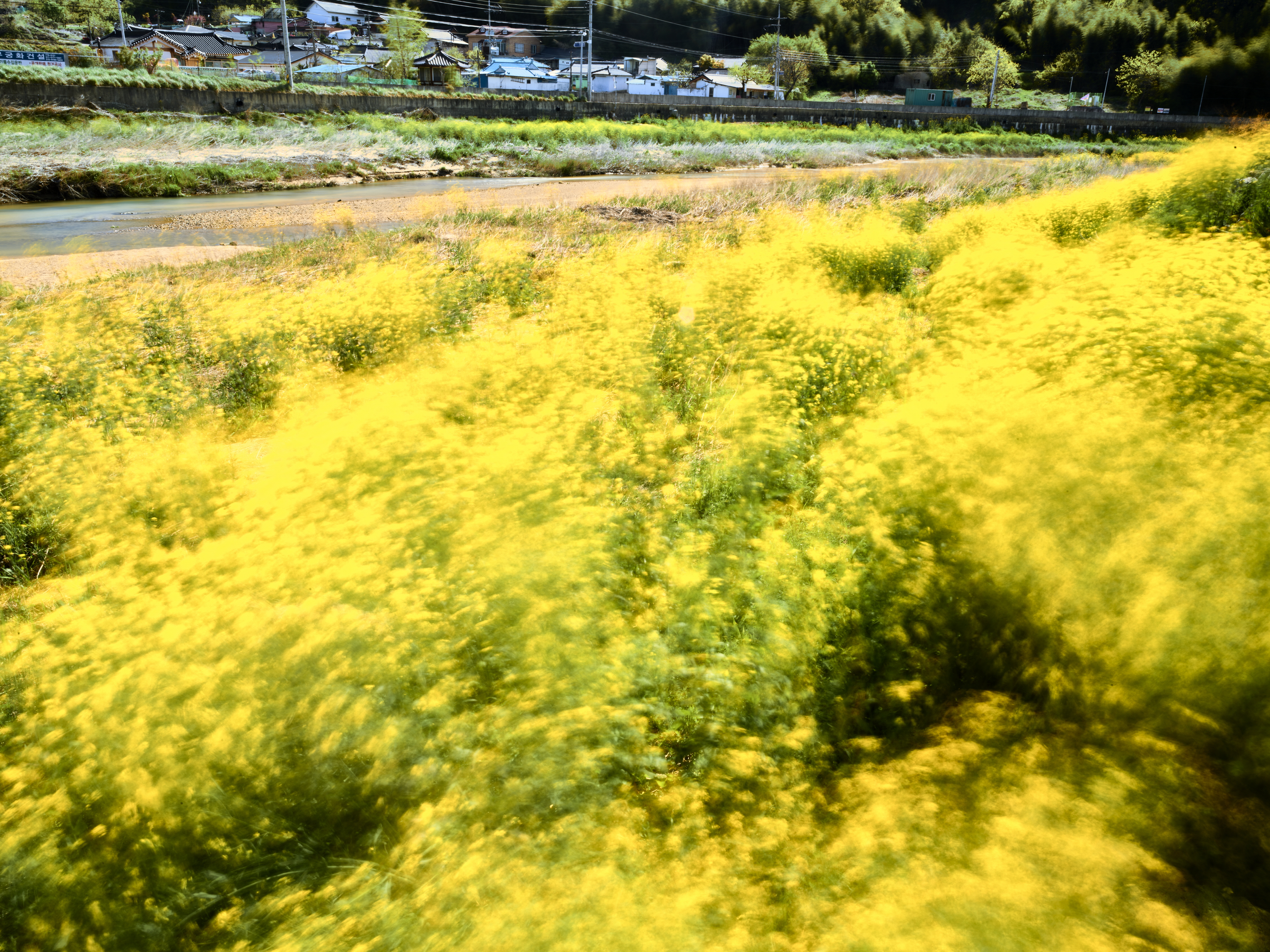 경주를 관통하는 문천 변을 따라 흐드러진 노랑 파도가 친다.