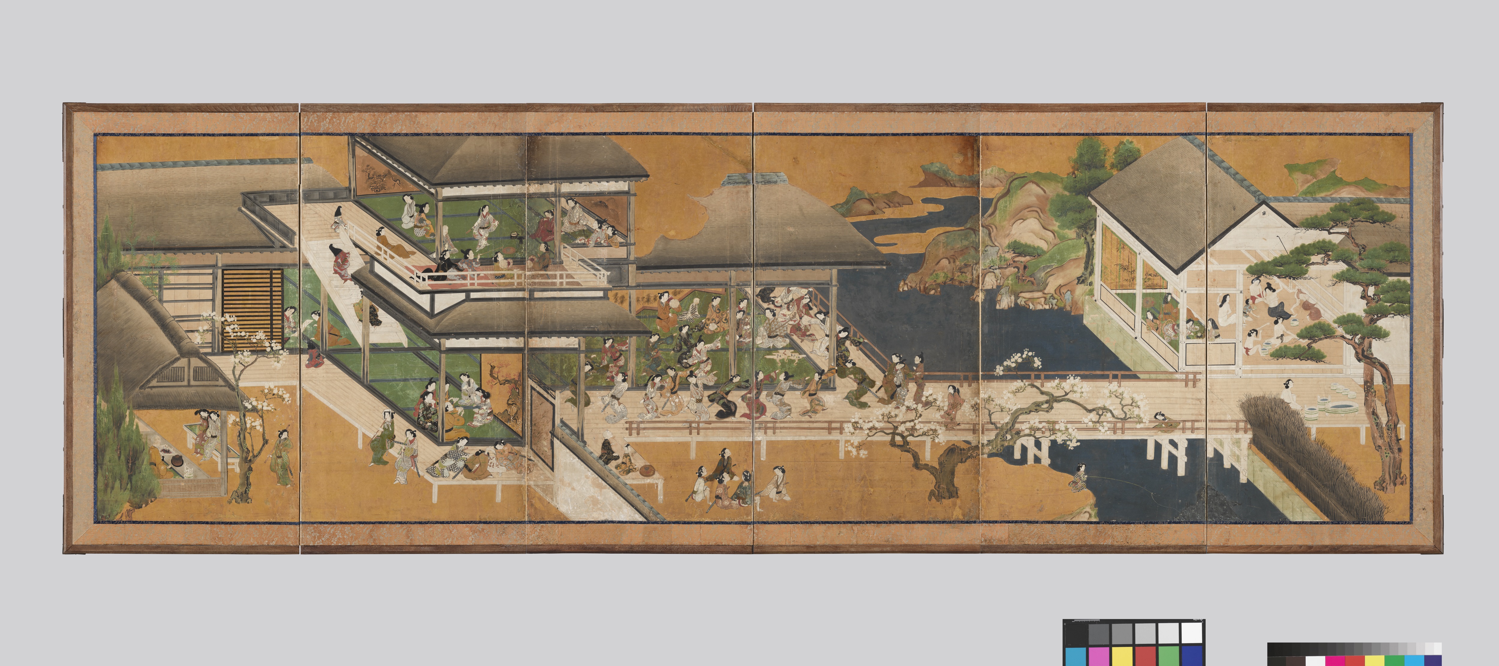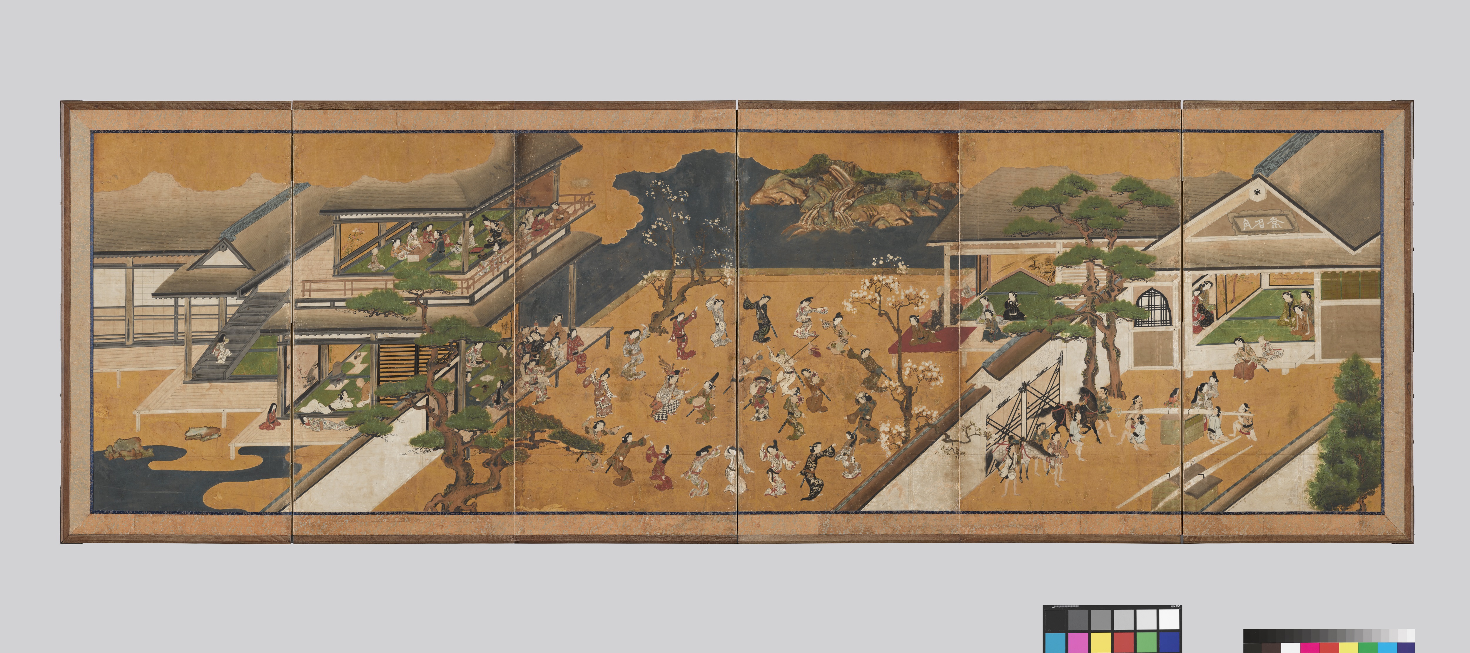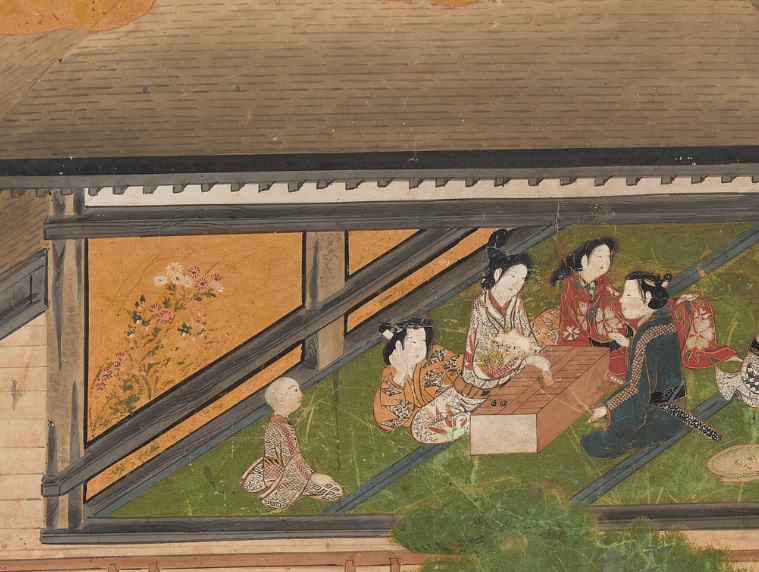 또한 이번 정기교체에서는 에도시대江戶時代(1603-1868)의 놀이 문화를 보여주는 병풍 <저내유락도邸内遊樂圖>도 선보인다. 현대인은 대부분 집에서 독서 혹은 게임을 하거나 넷플릭스를 보며 여가생활을 즐기는 경우가 많다. 17세기 에도 시대 사람들은 쌍륙, 장기, 가루타 등 게임뿐만이 아니라 다도, 서예, 춤, 음악 연주 등 실내에서도 굉장히 다양한 ‘놀이’를 즐겼다. 특히 지금의 사우나와 같이 뜨거운 증기에 목욕을 하는 에도 시대 공중목욕탕이 볼 만하다. 즐거운 놀이를 하며 행복하고 만족스러웠던 에도 시대 사람들을 볼 수 있는 작품이다.
