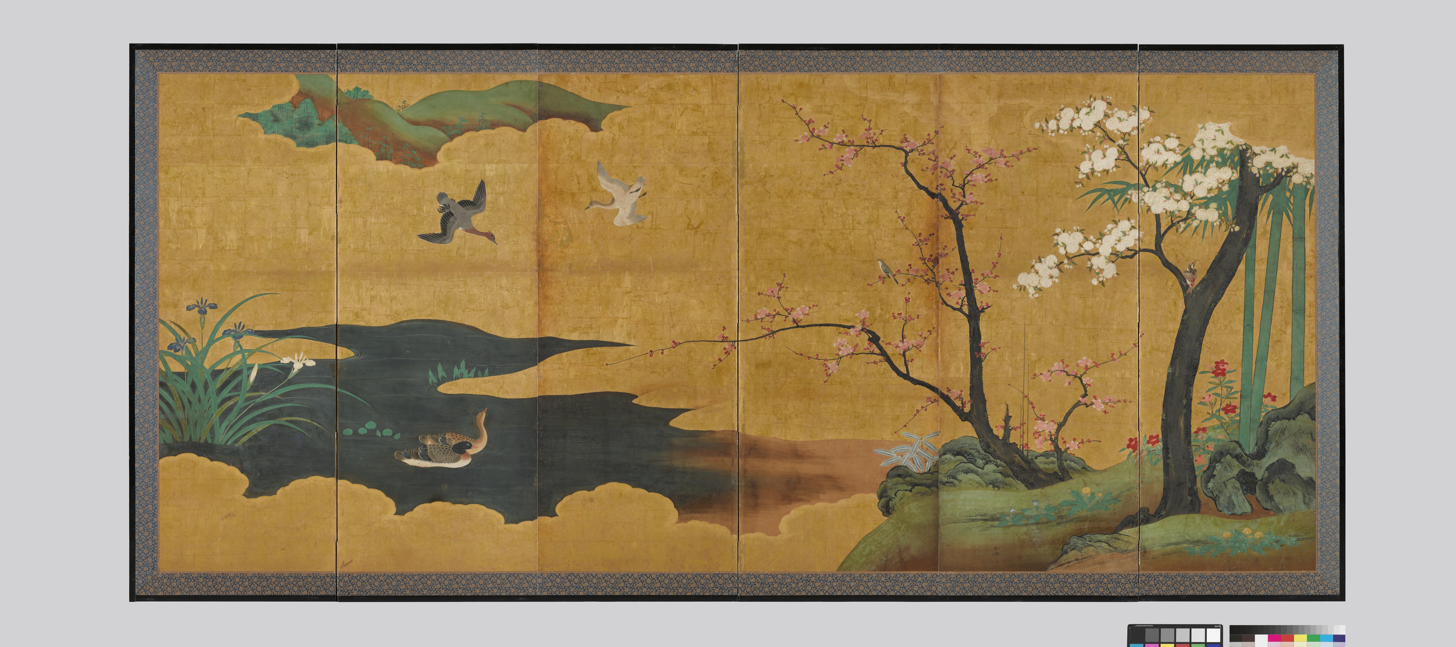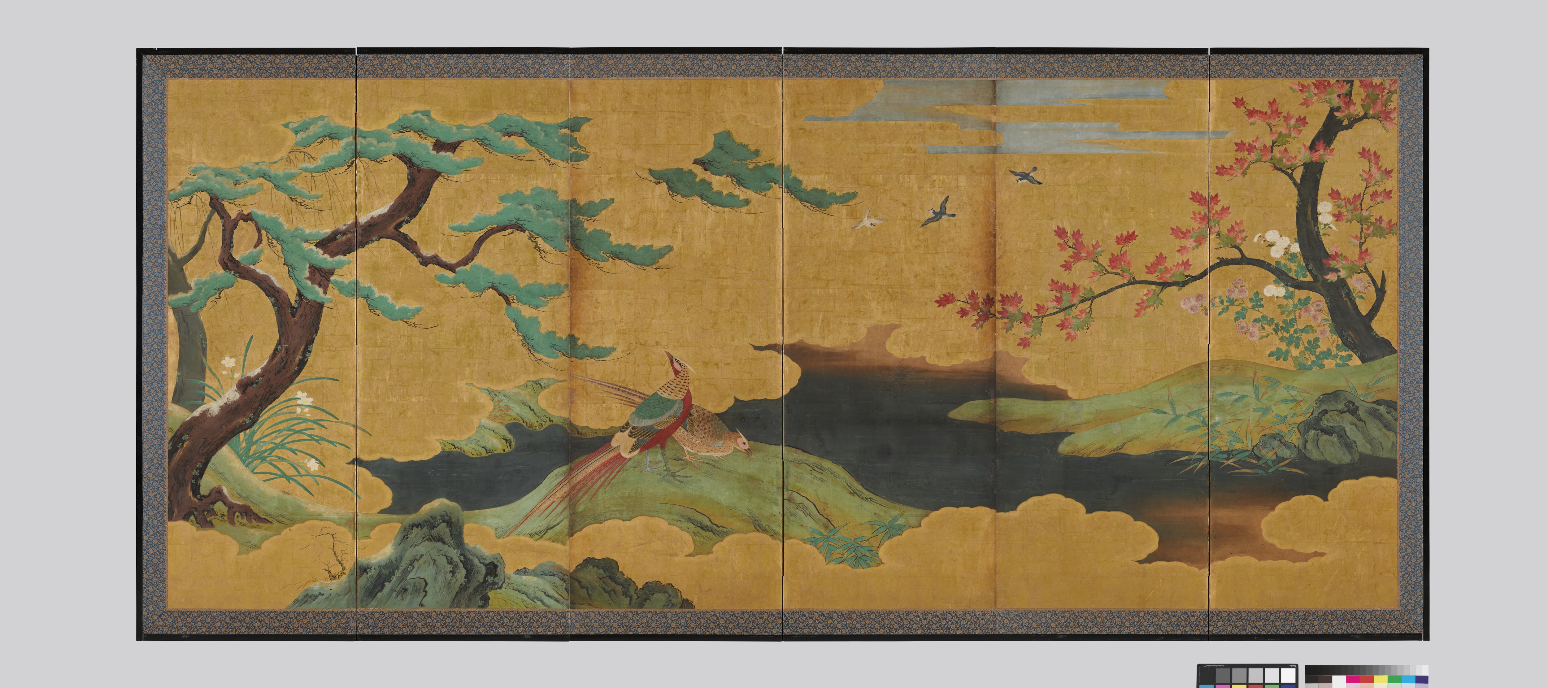 이밖에도 에도 막부의 전속 화가 집단이었던 가노파(狩野派)의 작품으로,고위 무사 저택의 실내를 장식했던 병풍인 <사계화조도四季花鳥圖>와 17세기 일본에서 직접 생산한 대표적인 찻잔인 <구로오리베[黑織部]> 다완도 선보인다.