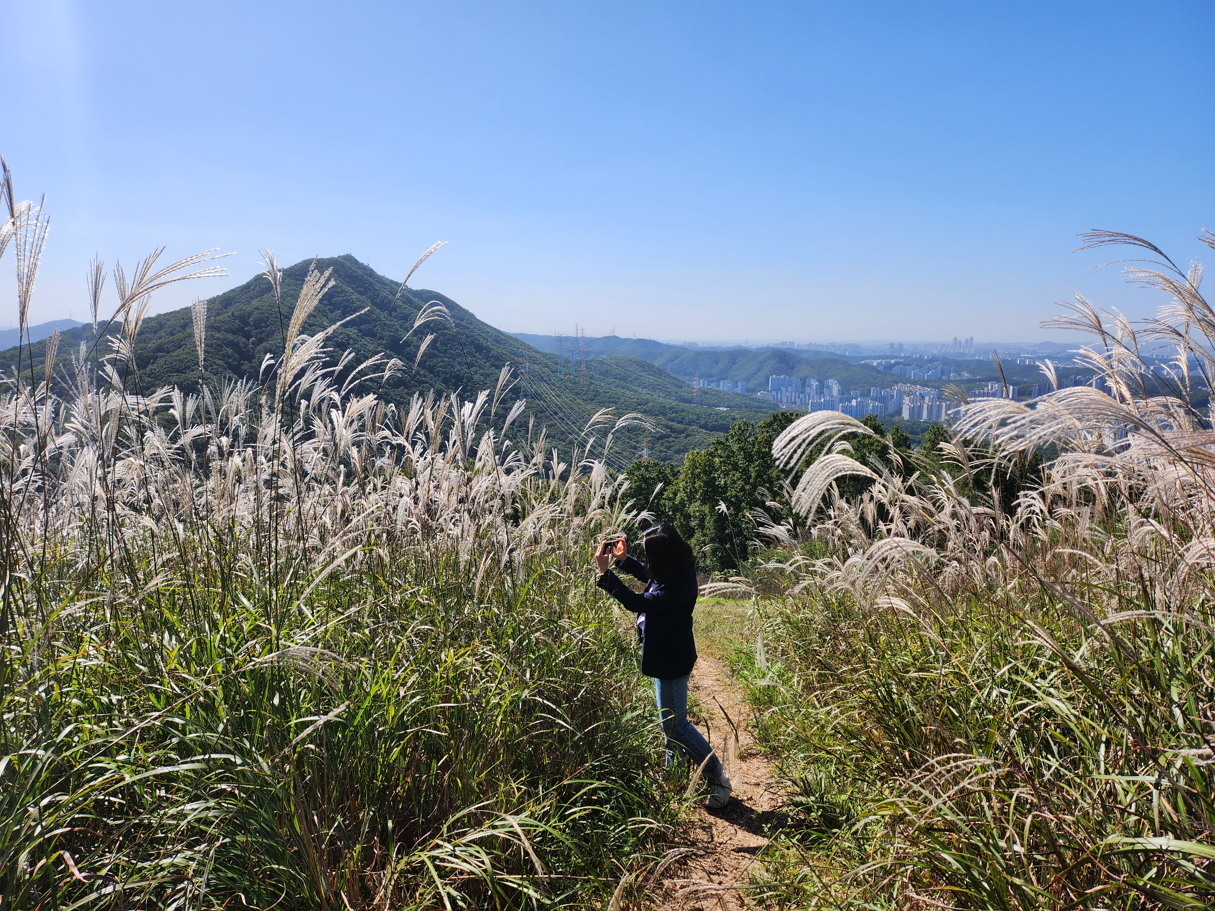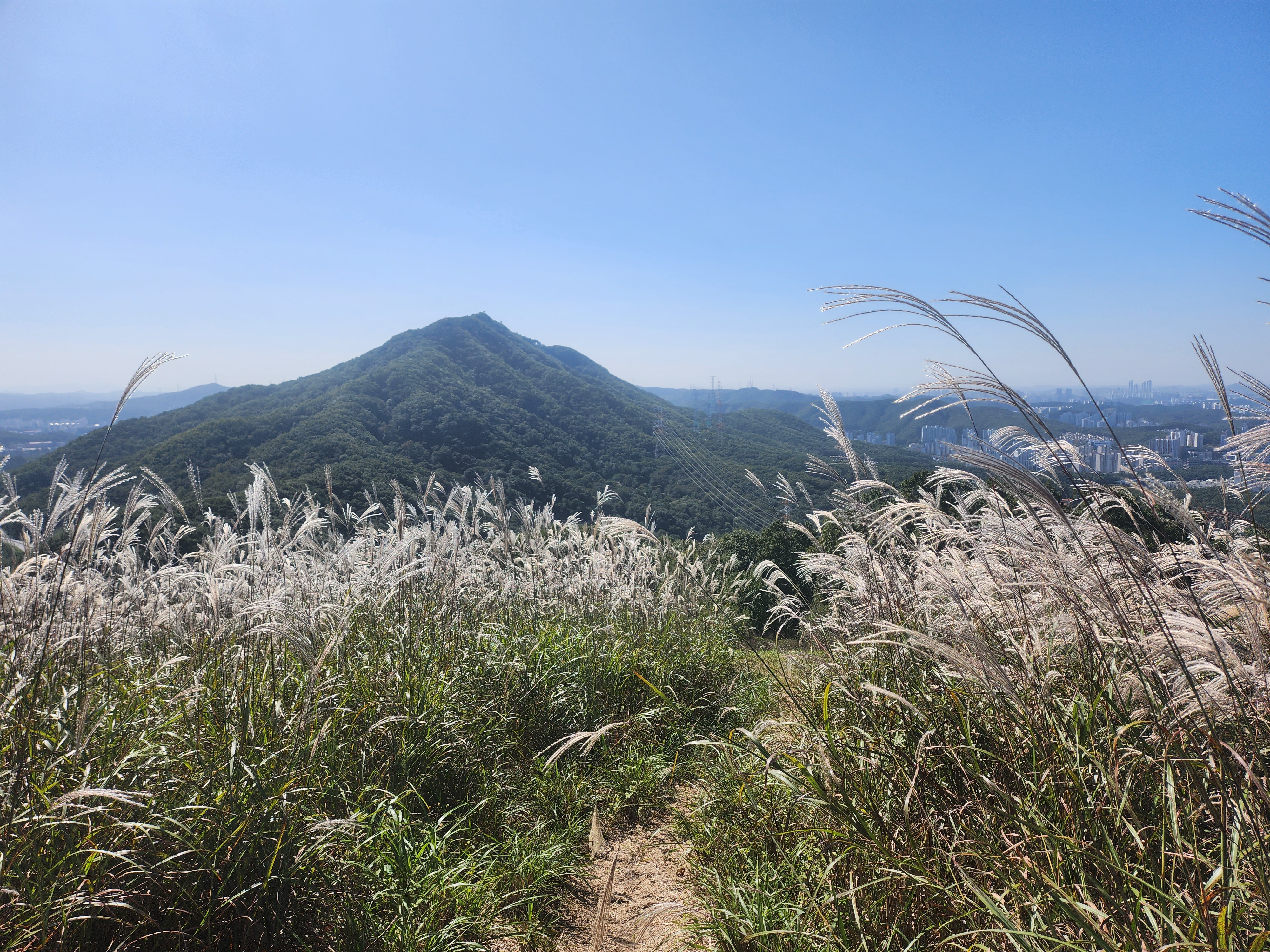 할미산성 내 탐방로 정비하면서 정상부근에 억새를 무진장 심었다.