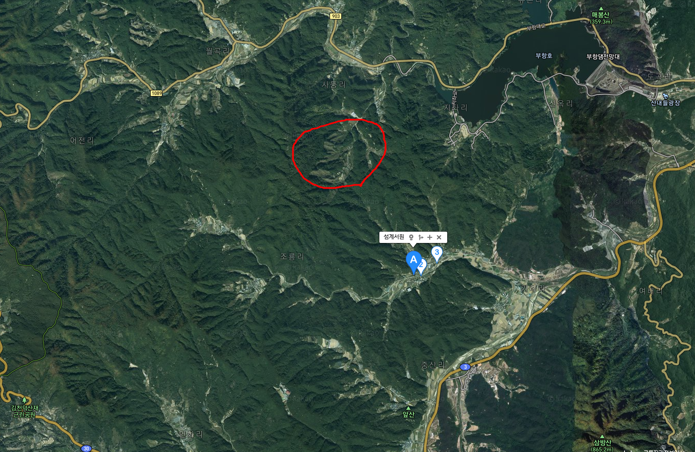 저 섬계서원이라 표시한 지점이 내가 자란 곳이며 현재 엄마랑 동생이 사는 데다. 붉은색으로 동글한 데가 비봉산이라는 데라, 해발 650미터, 내가 고향을 떠나기 전엔 저 산과 그 기슭 온산이 내나 누빈 터전이다. 내가 어린 시절엔 저 산 이름도 몰랐고(엄밀히는 없었다), 해발도 몰랐다. 그러기엔 주변을 두른 해발 천미터를 상회하는 산이 즐비하는 까닭에 고작 해발 650미터 봉우리가 무슨 이름?