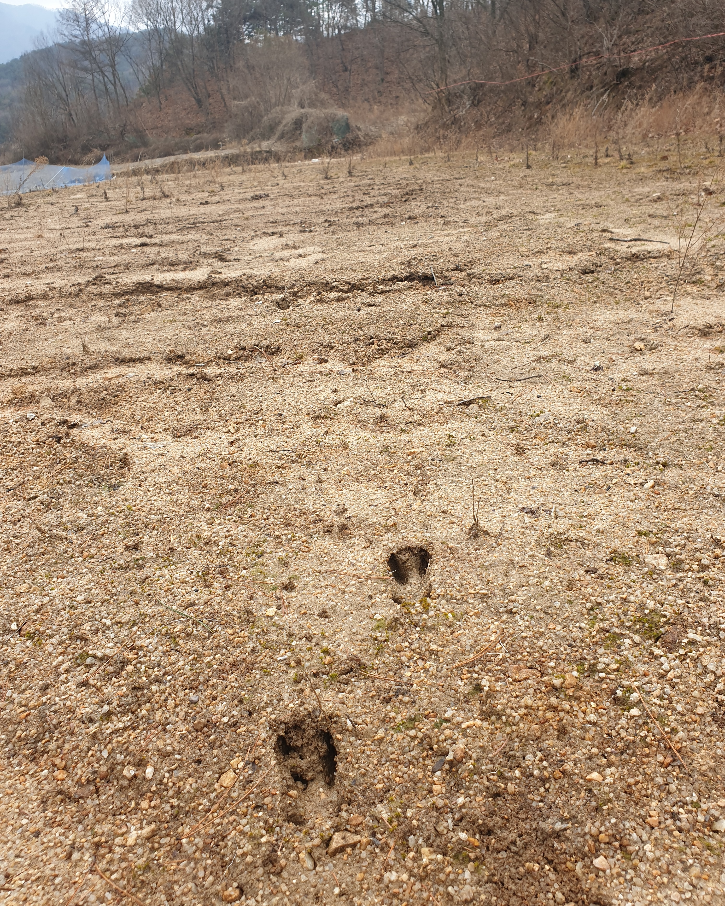 밭두둑 보니 고라니 간밤 저짝으로 다녀간듯 마실 나왔던가?
