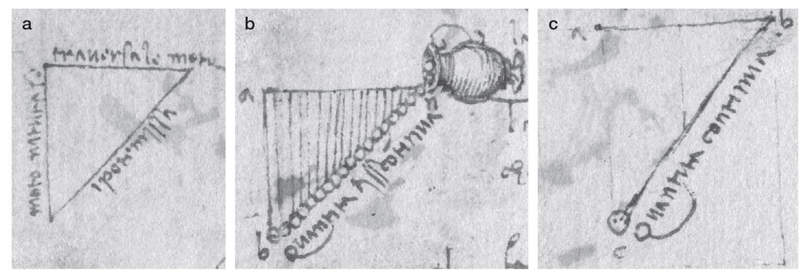 다빈치 역시 중력운동을 수학적으로 표현하고 싶었을 것이나, 당시에는 수학적 도구가 충분치 않아서 못하고 말았다. 다행히 그림이 후세에 판독되어 신용을 얻게 된 셈이다.