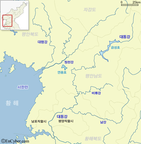 강동육주의 모양을 보면 위와 같은데 남쪽 경계는 청천강이 아니라 대령강이라는 강이다.