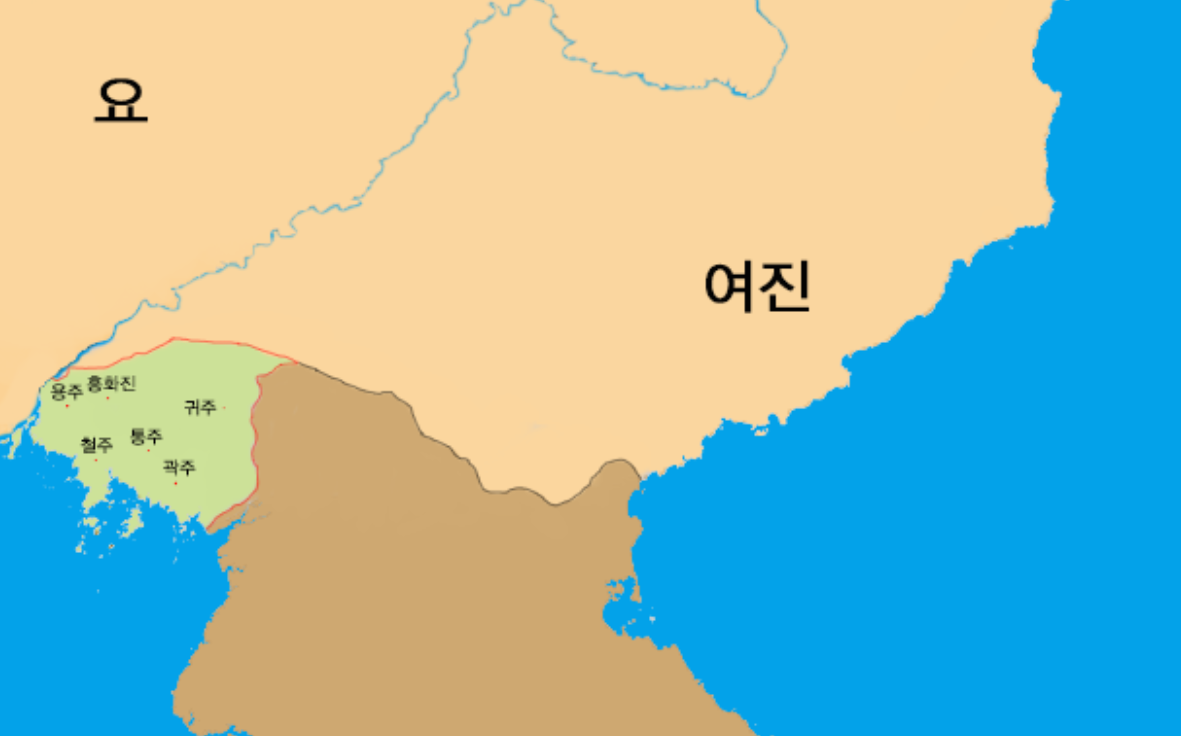 강동육주를 얻기전, 고려는 대령강이라는 강을 경계로 거란 혹은 여진과 국경을 맞대고 있었던 셈이다.