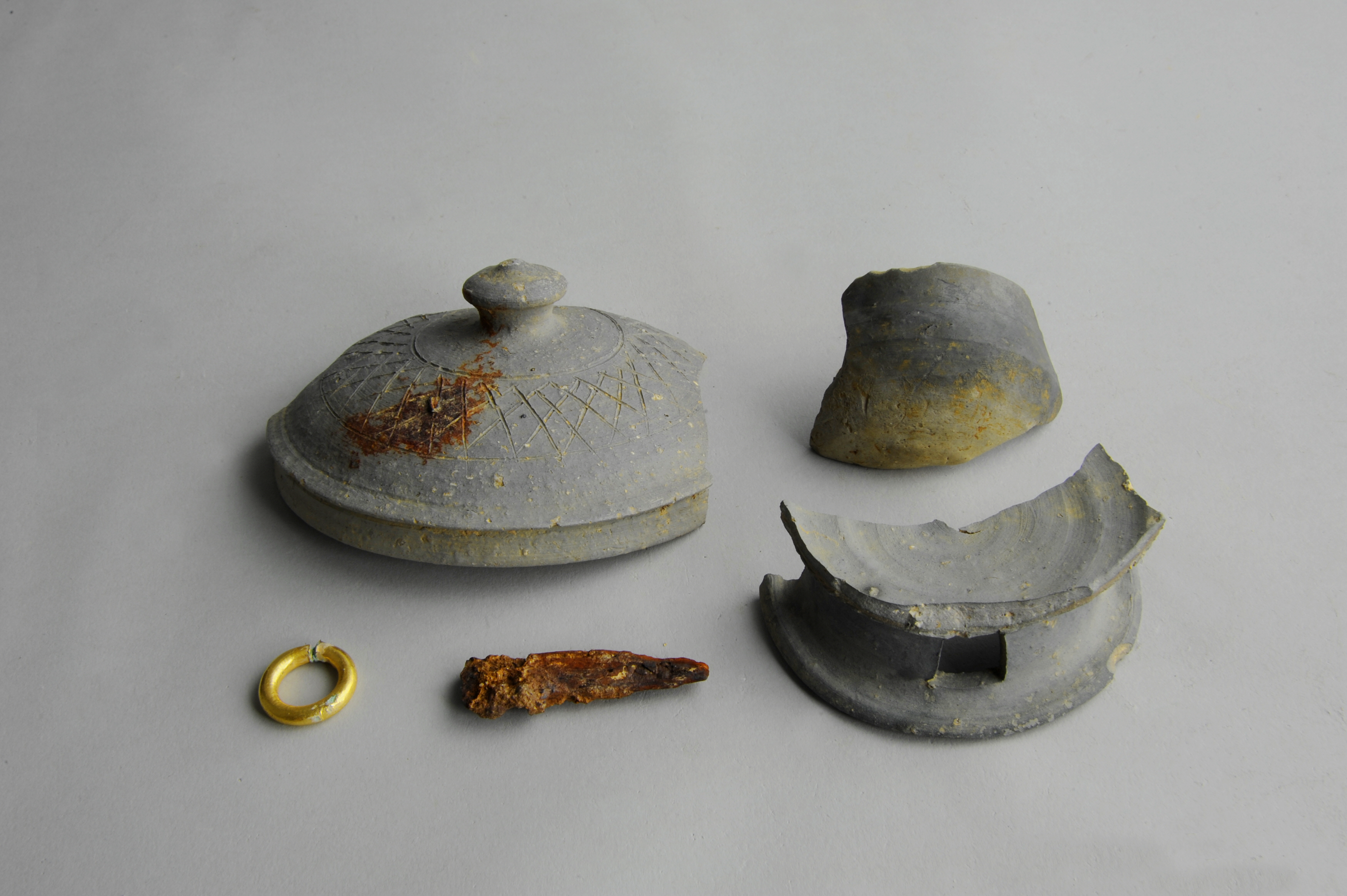 출토 유물은 도굴 등의 피해로 소량의 유물만 확인되었다. 무덤방 내에서 통일신라 6세기대로 뚜껑, 소형잔을 확인했으며, 이외에도 금동제 귀걸이, 철도자(鐵刀子) 등이 확인되었다.