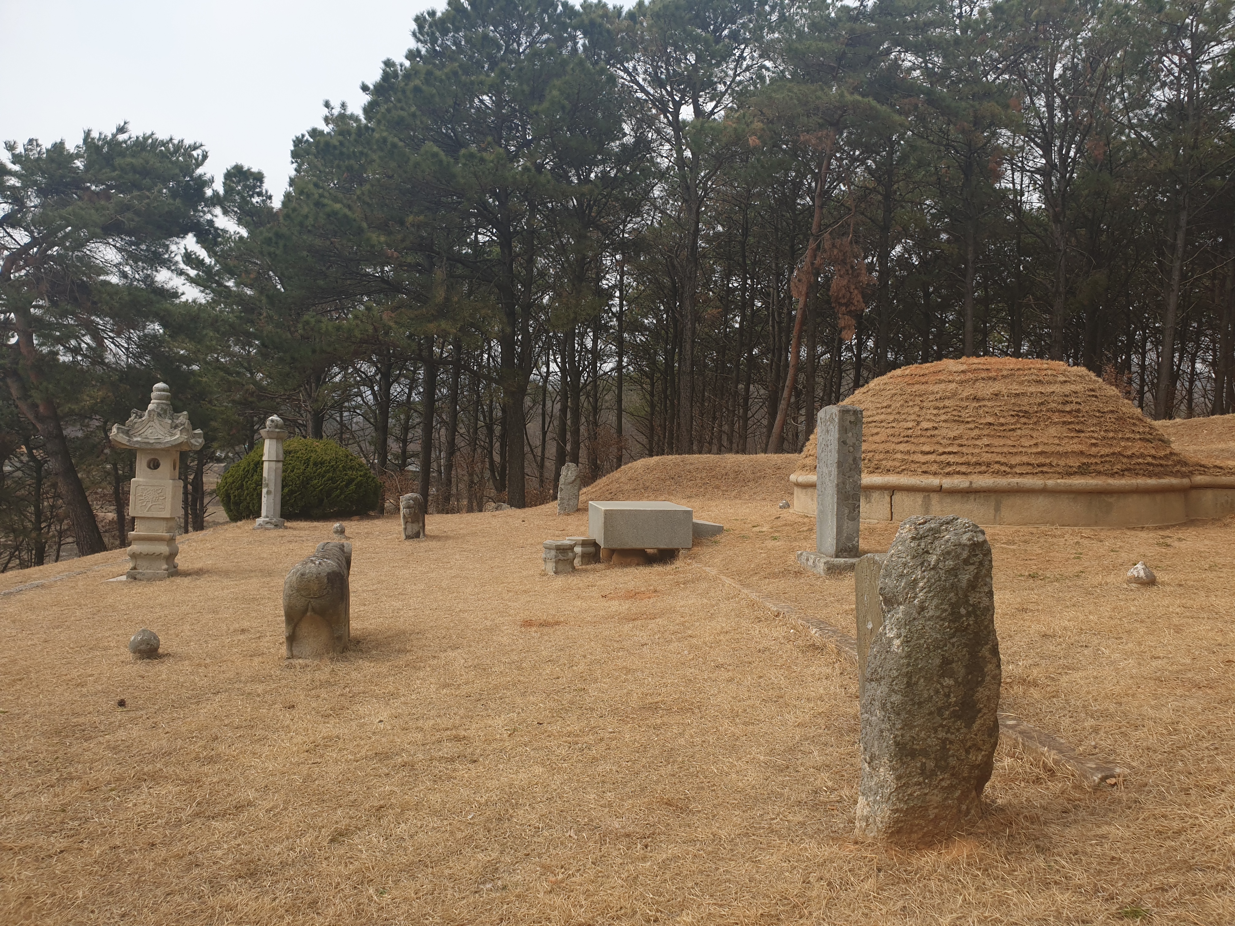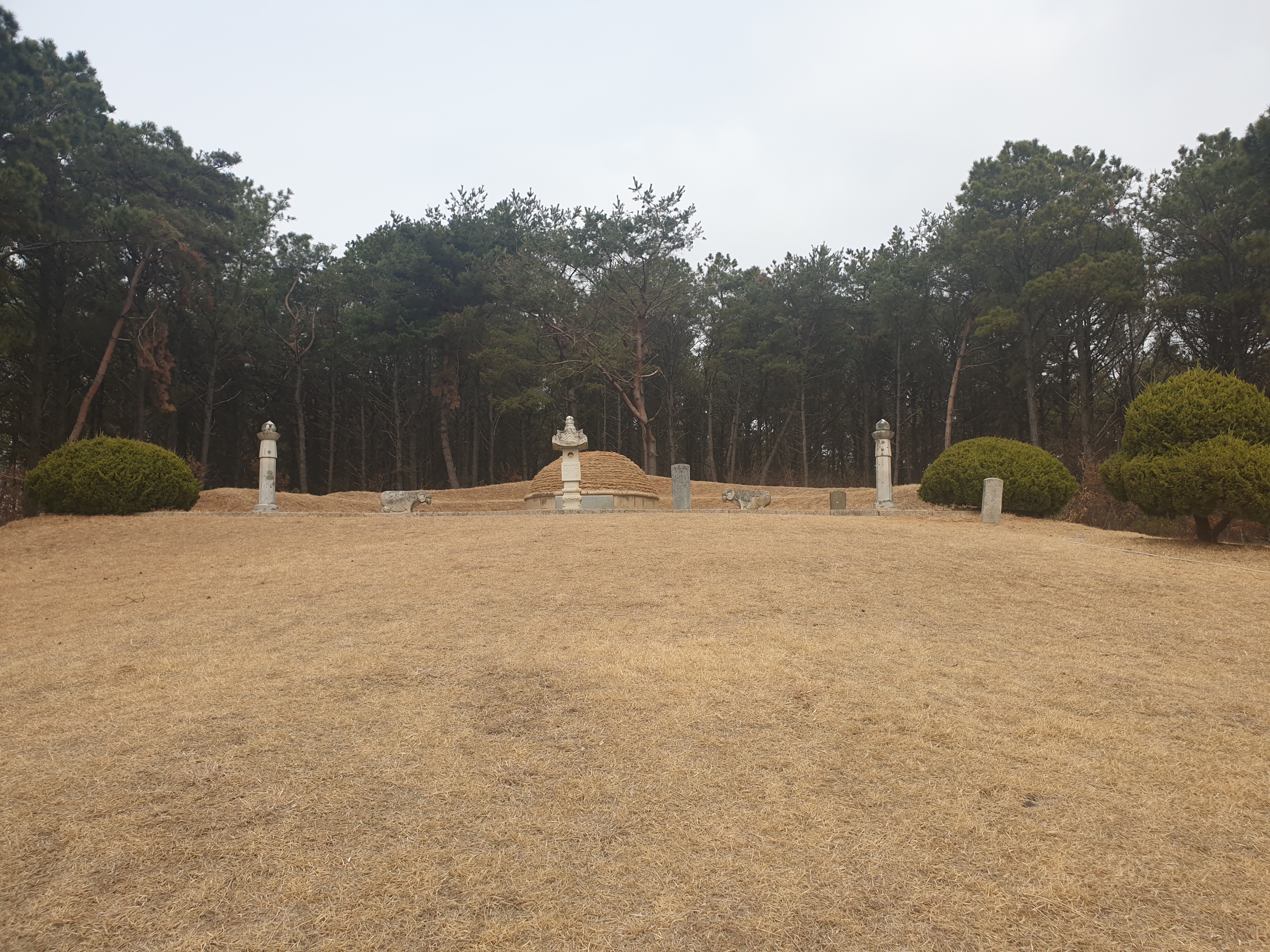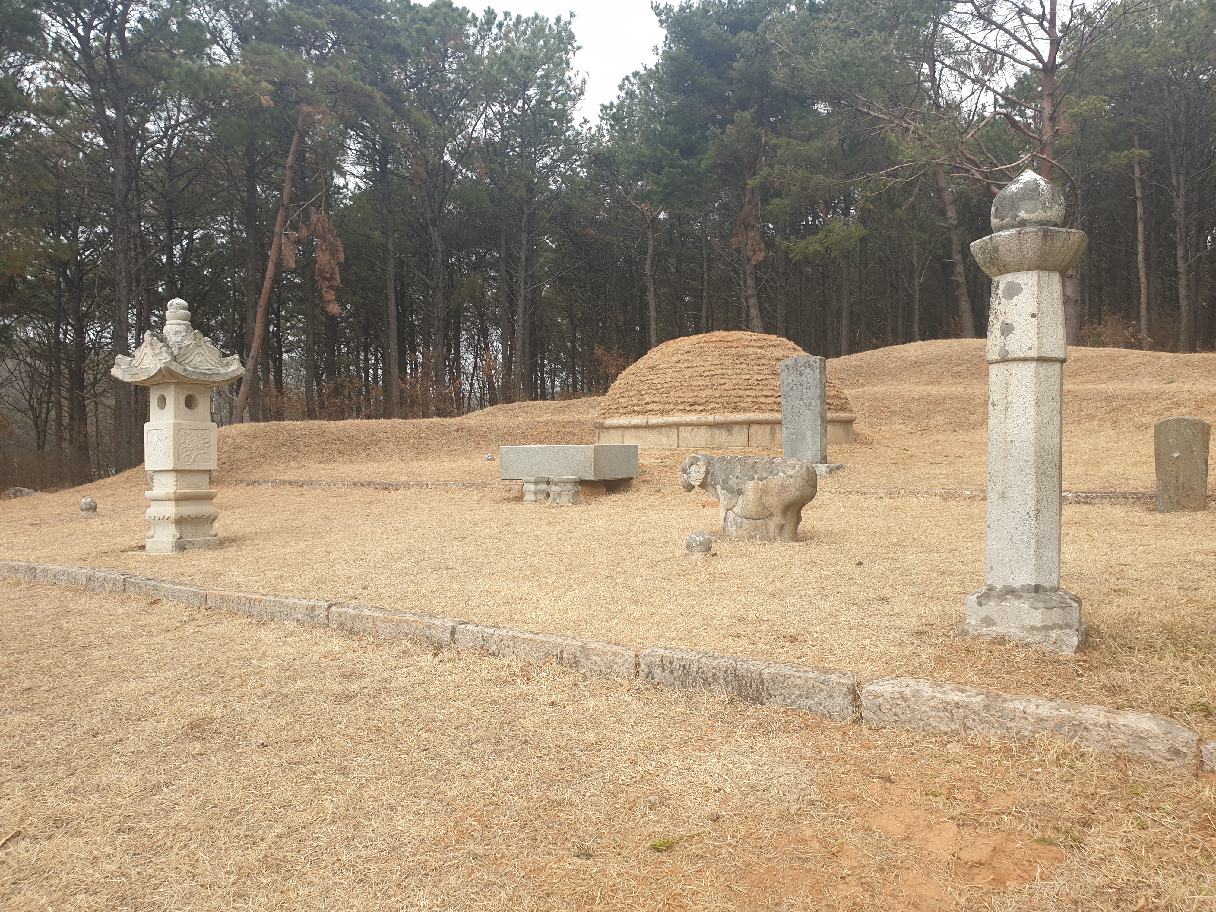 In front of the tomb mound are a stone table, stone lantern, stone statues of two civil officials, and two stone pillars. In 1967, a ritual house near the tomb was reconstructed by Yi's descendants.