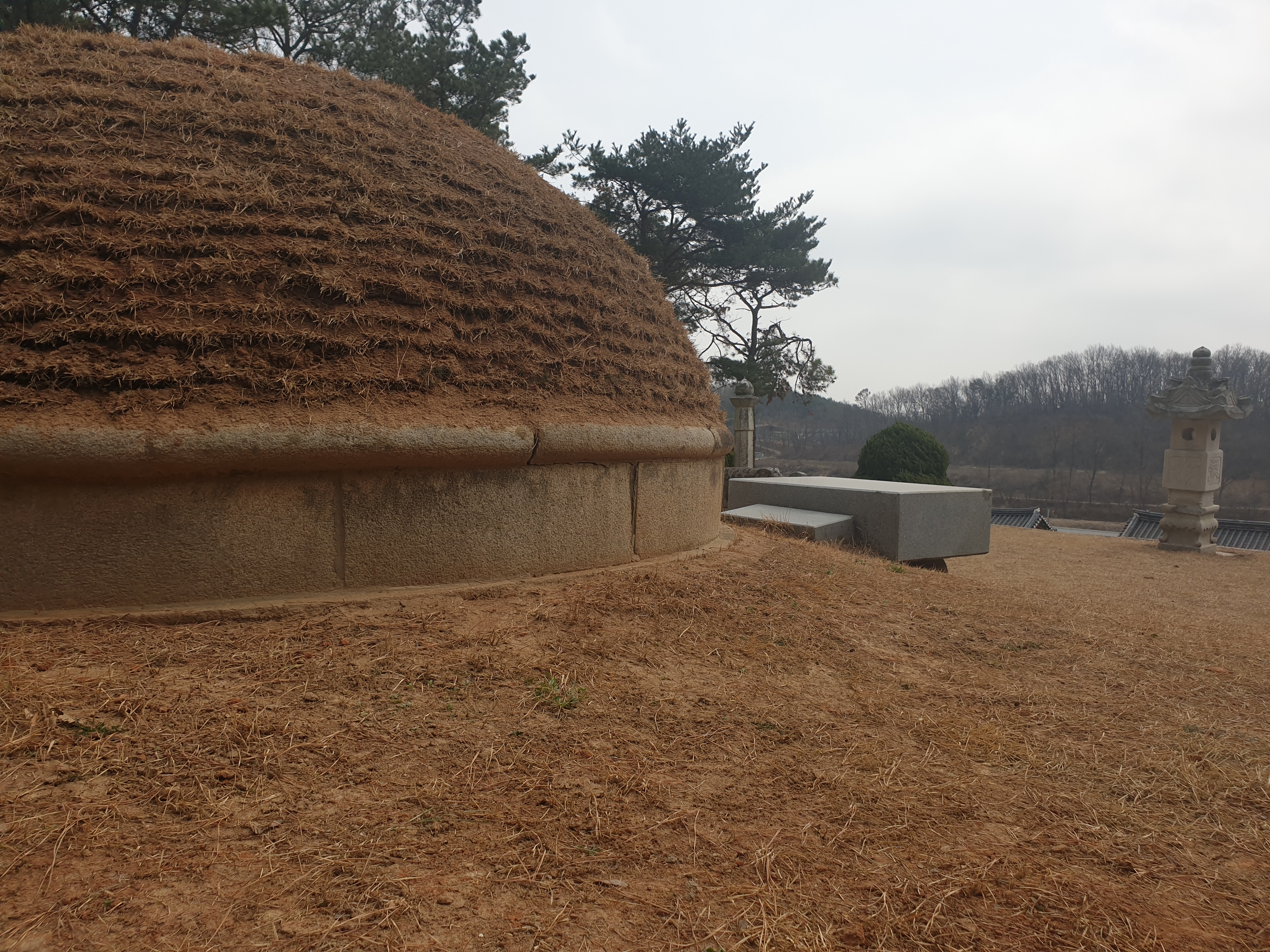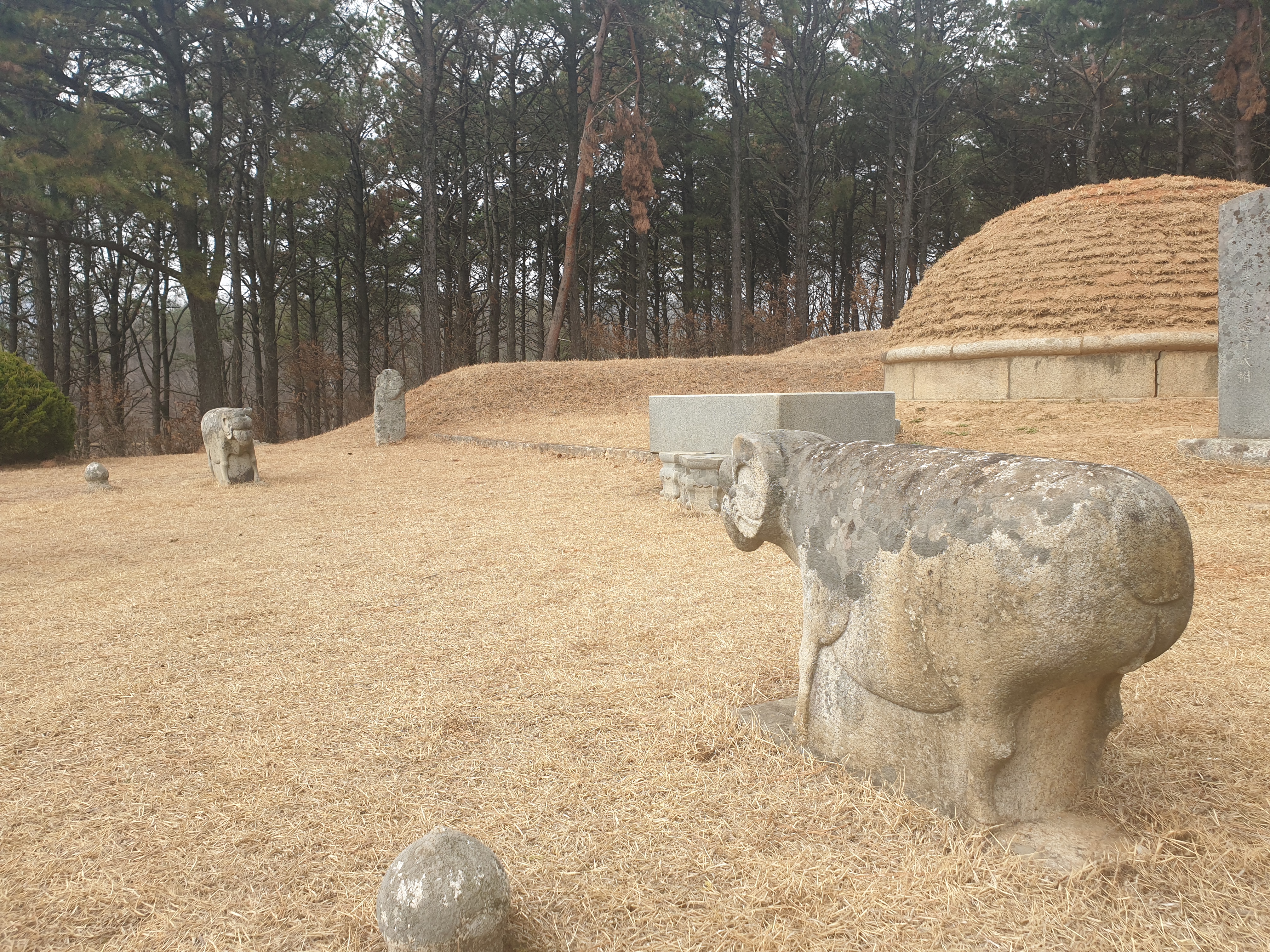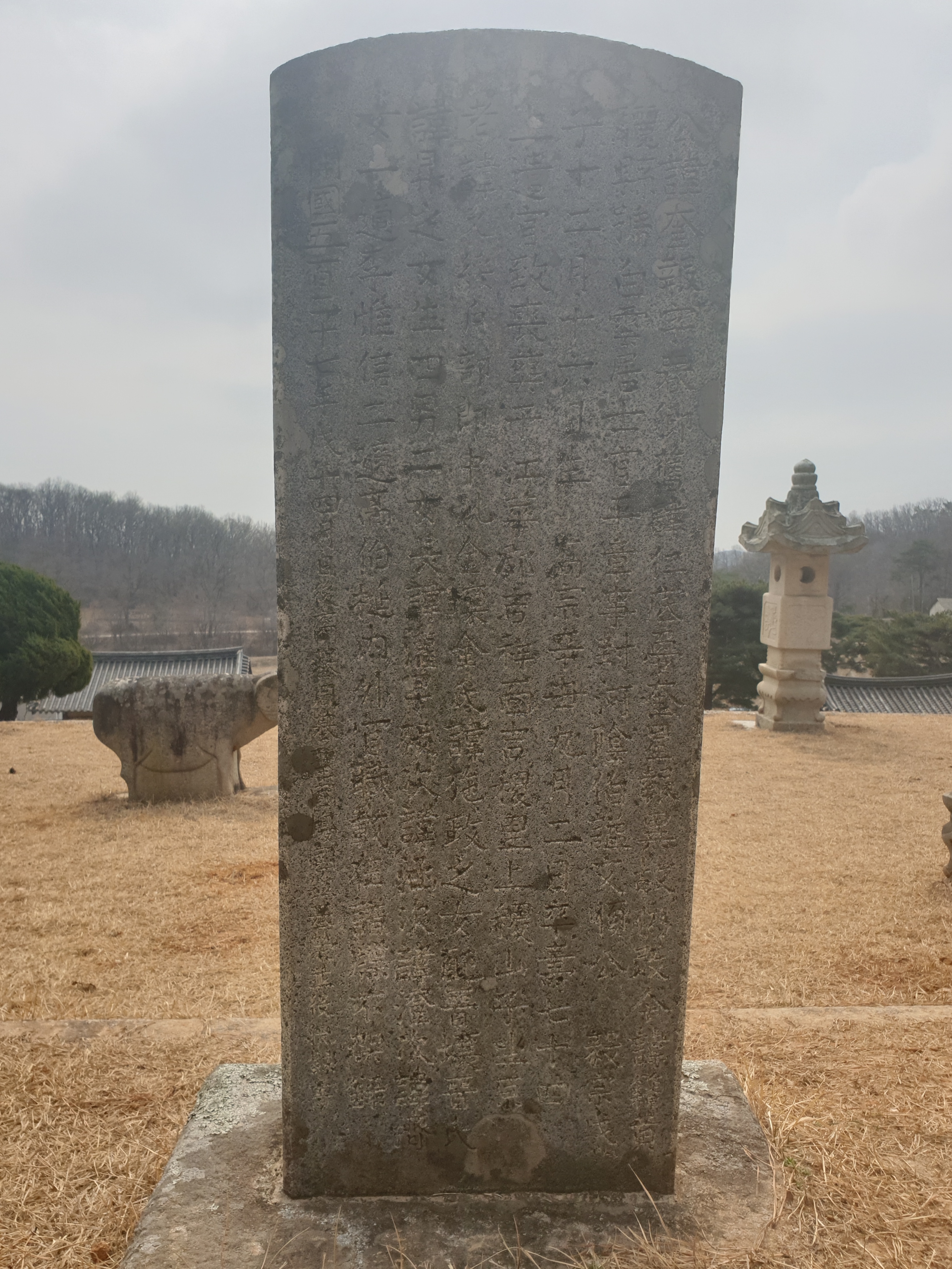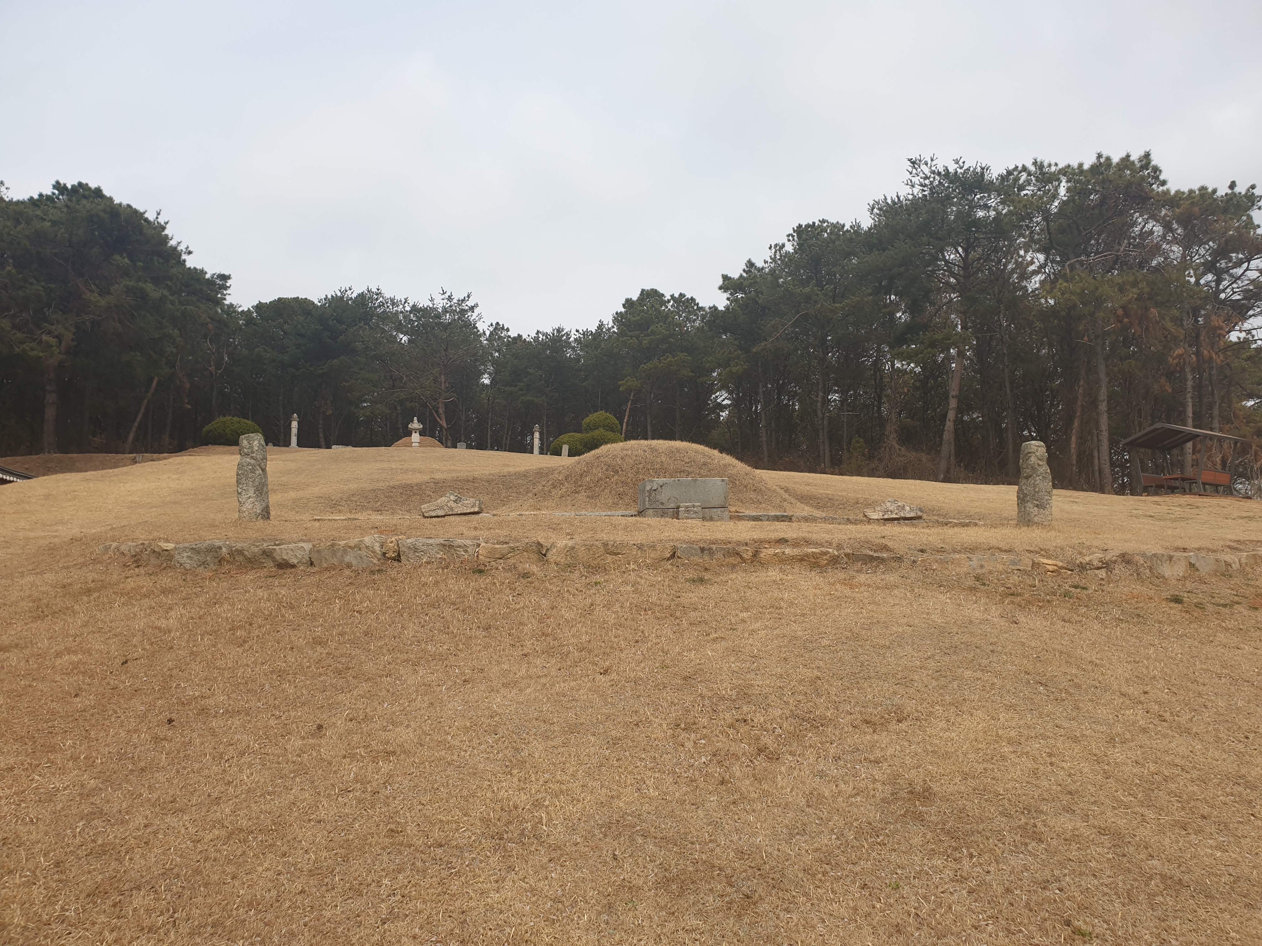 In front of the tomb mound are a stone table, stone lantern, stone statues of two civil officials, and two stone pillars. In 1967, a ritual house near the tomb was reconstructed by Yi's descendants.
