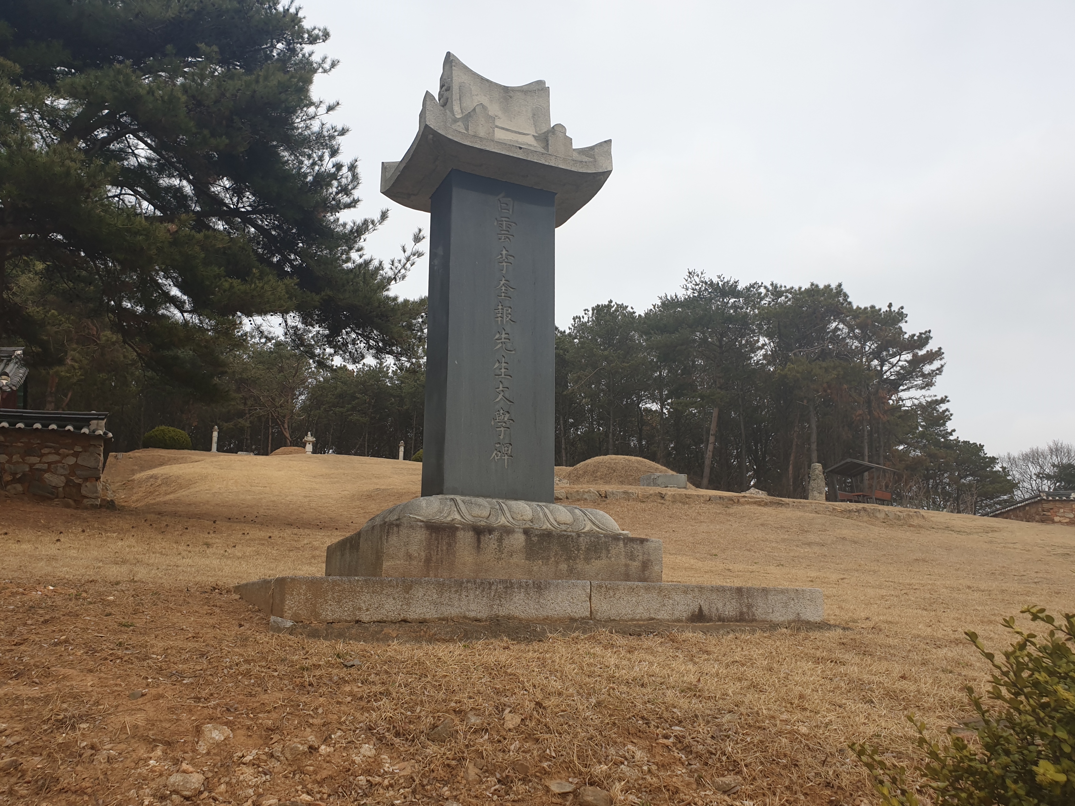 This is the Tomb of Yi Gyu-bo (1168-1241), a civil official and great writer of the Goryeo period (918–1392). He passed the state examination in 1190 and served various official posts. As one of the most distinguished writers in Korean history, he left a number of literary works written in classical Chinese, including the Saga of King Dongmyeong, an epic poem about the legendary founding king of Goguryeo.