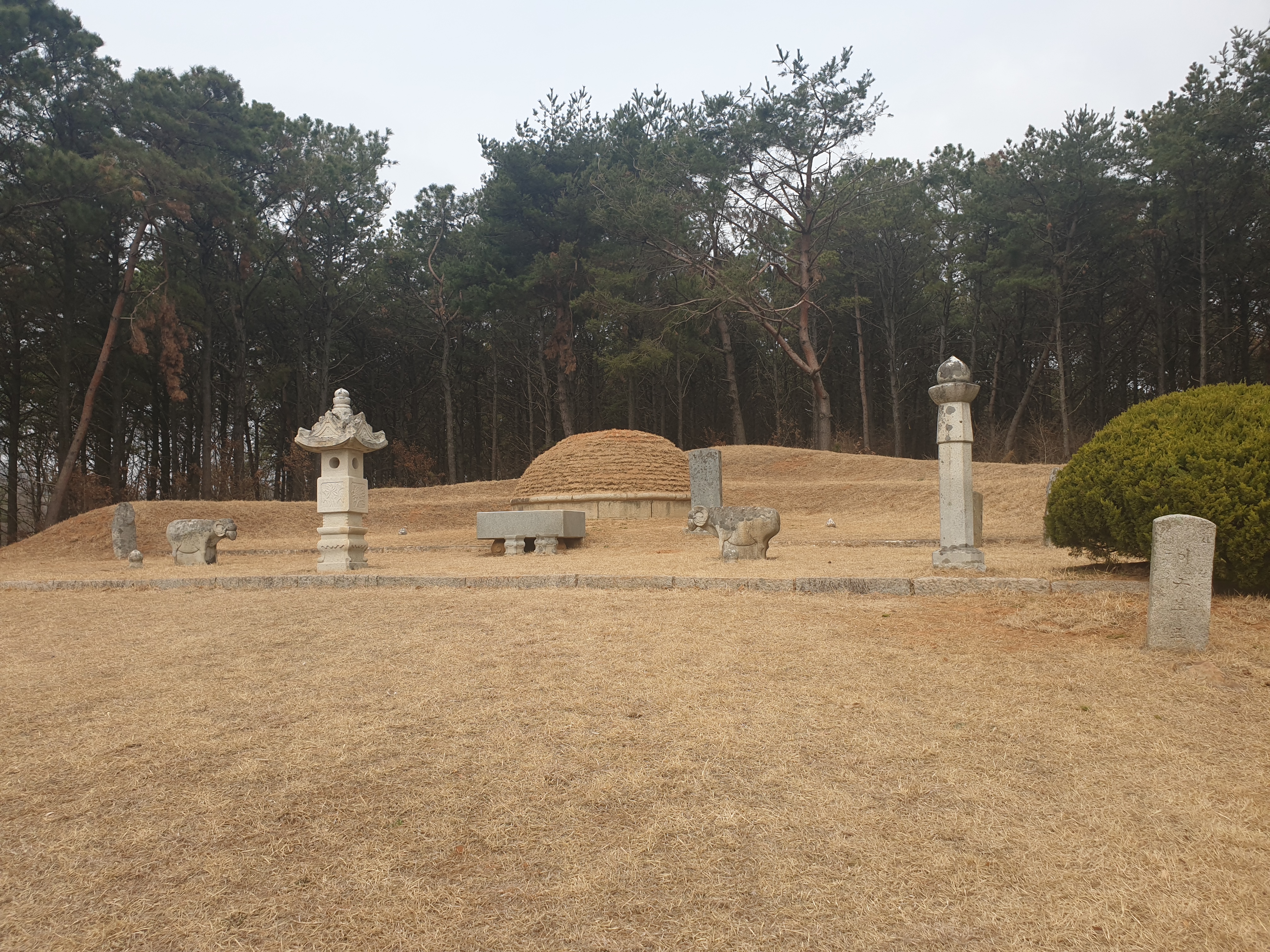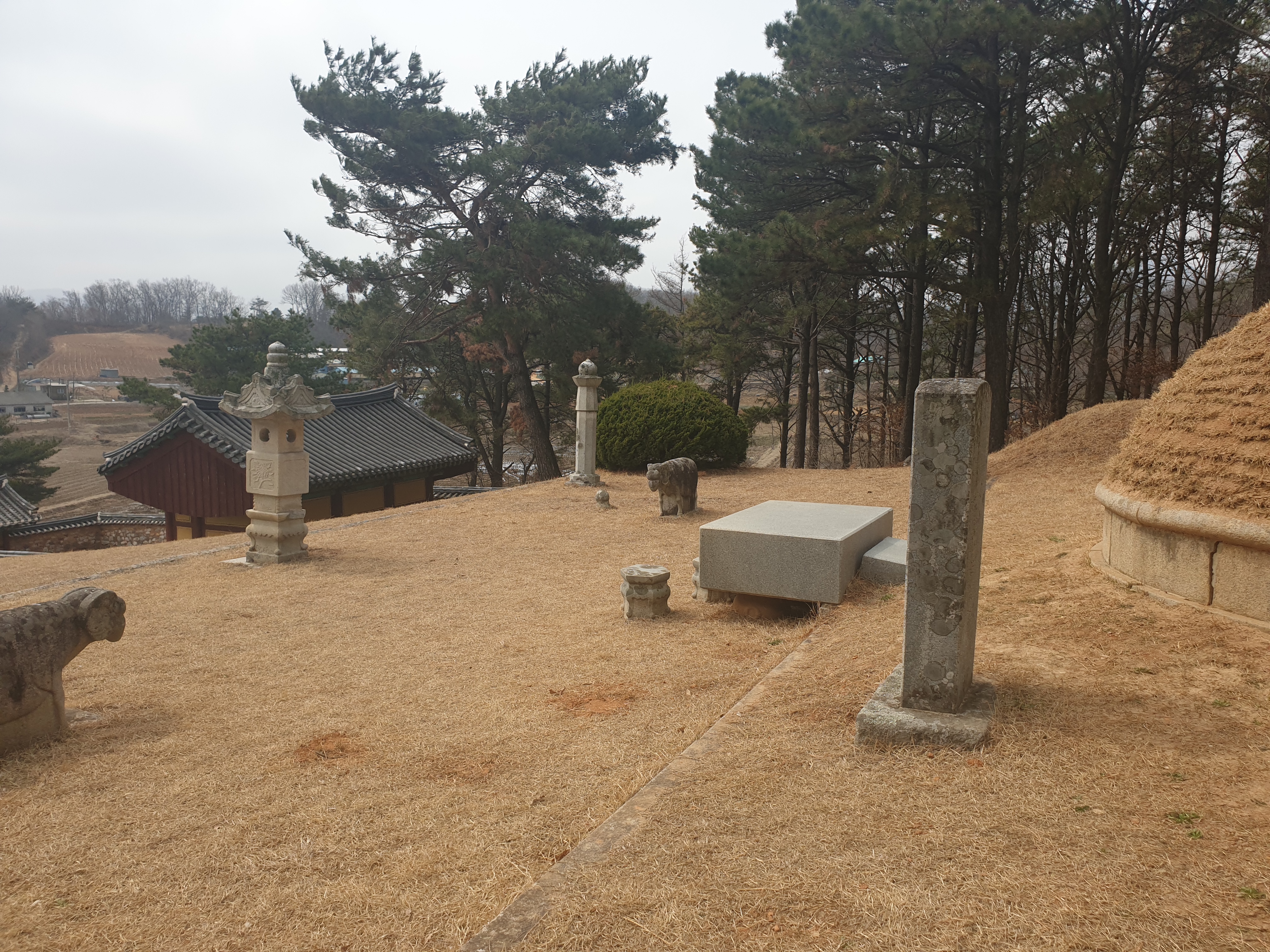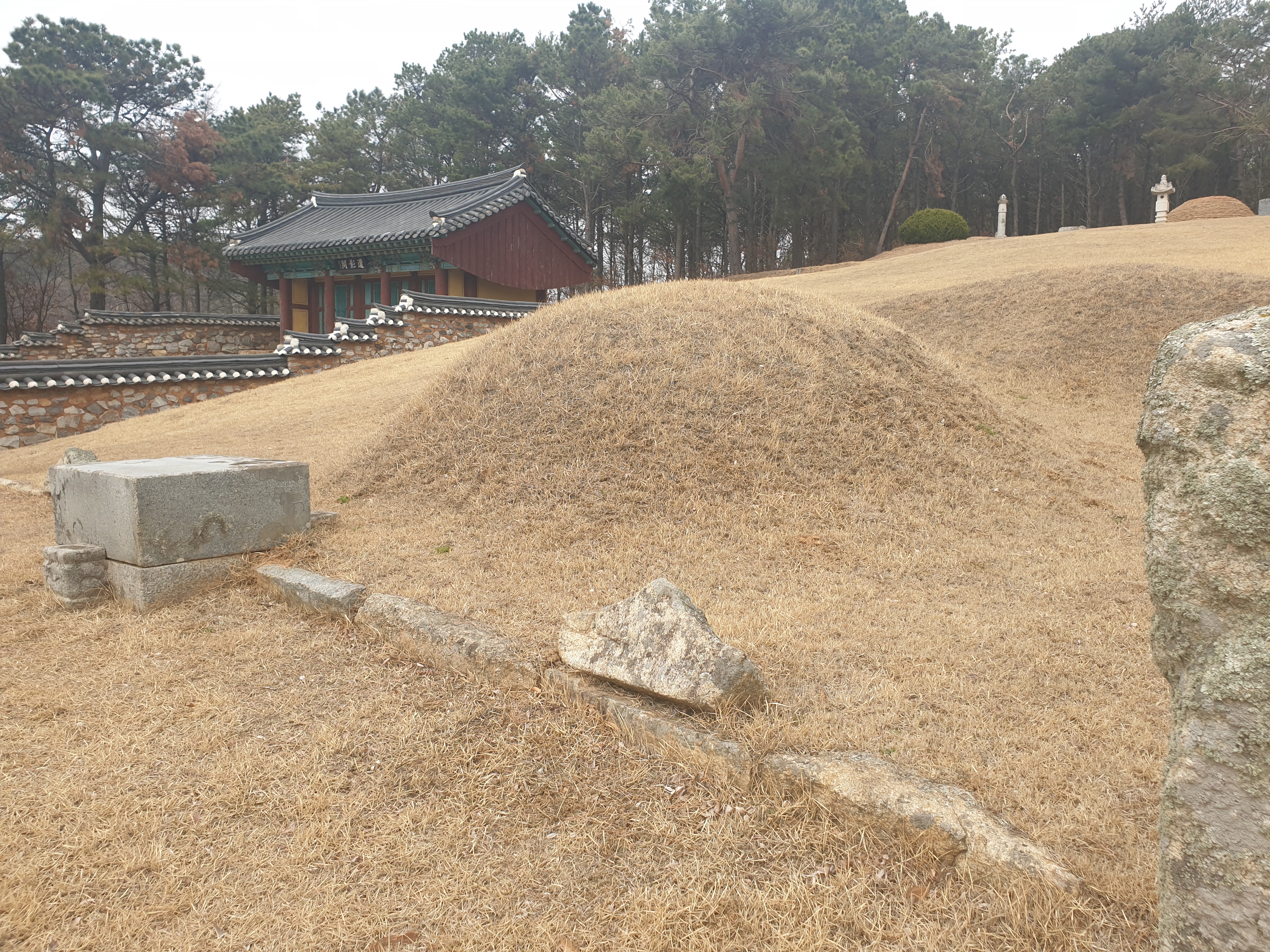 In front of the tomb mound are a stone table, stone lantern, stone statues of two civil officials, and two stone pillars. In 1967, a ritual house near the tomb was reconstructed by Yi's descendants.