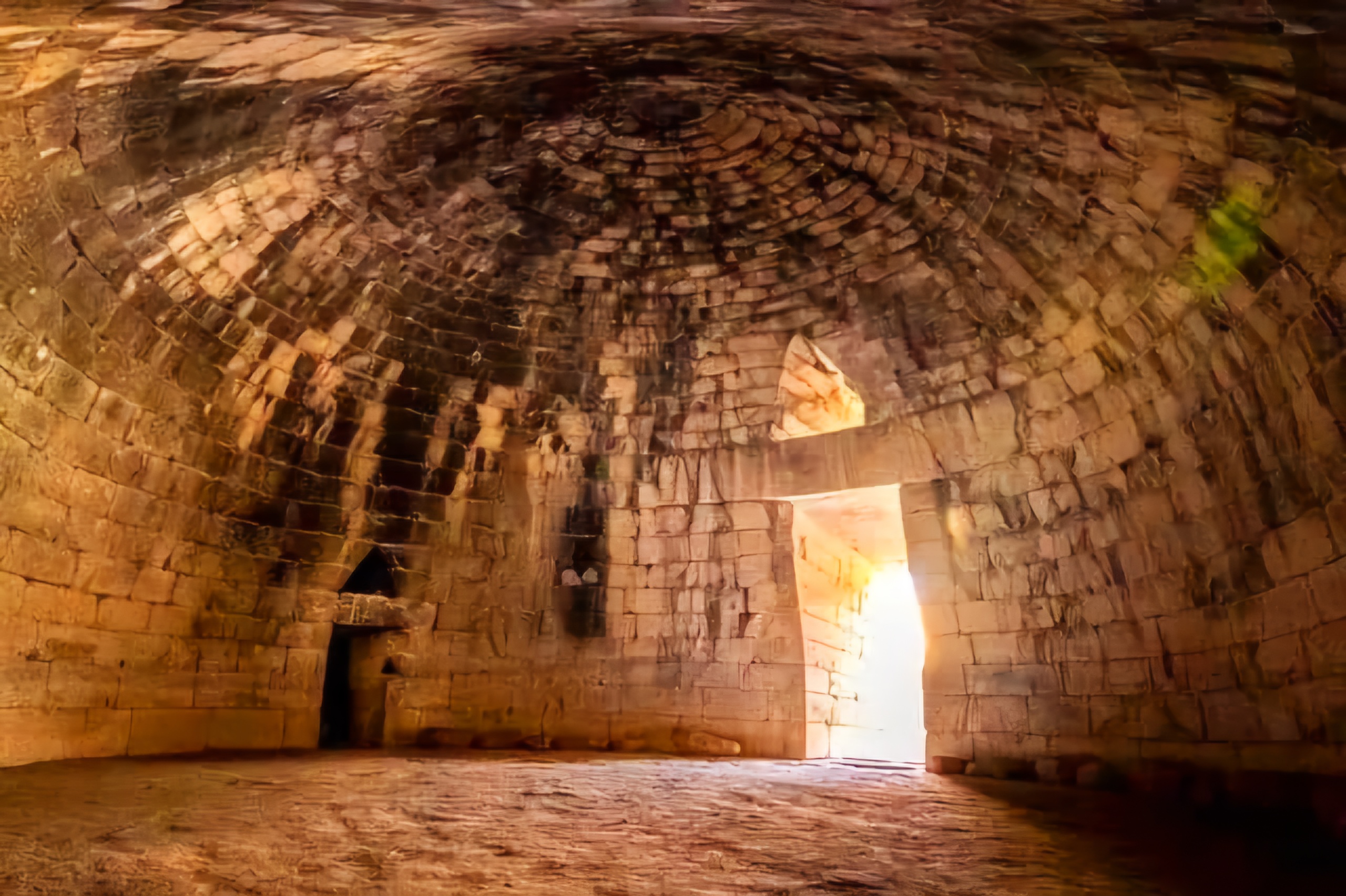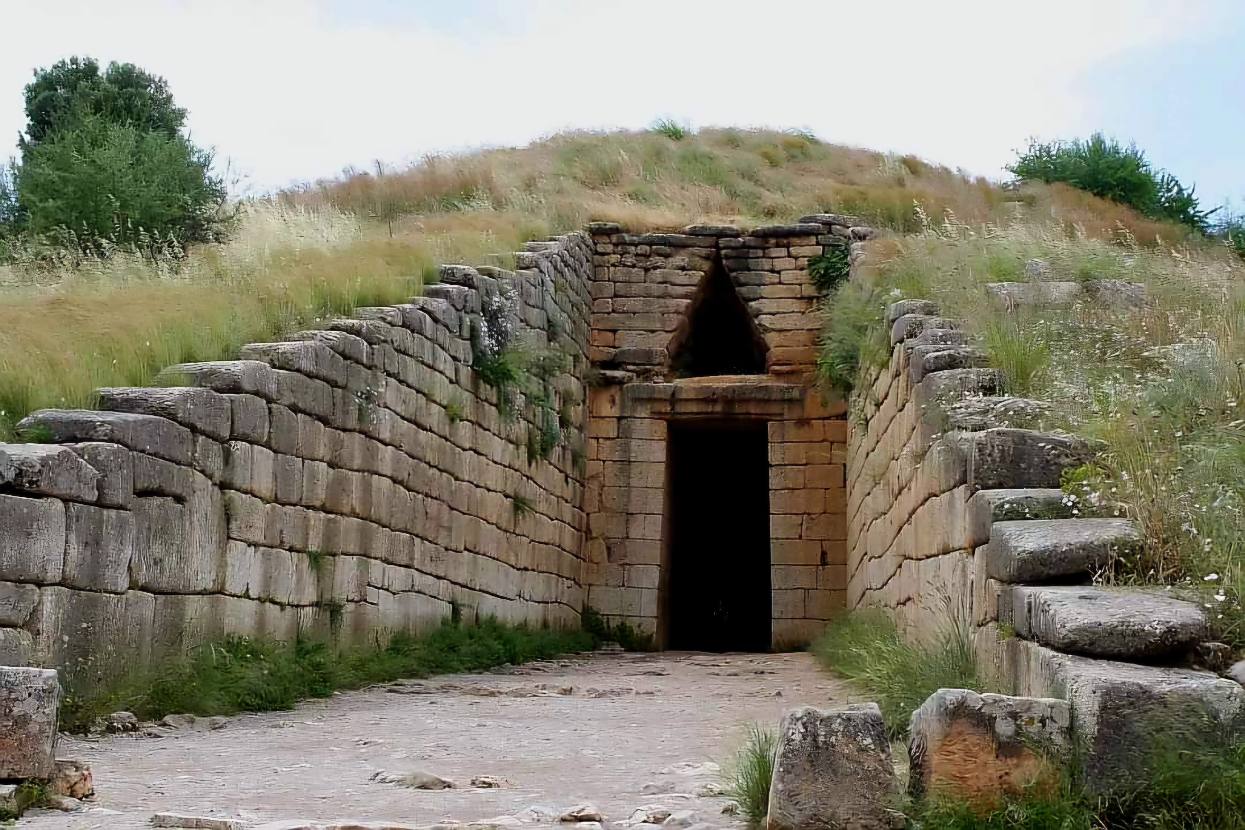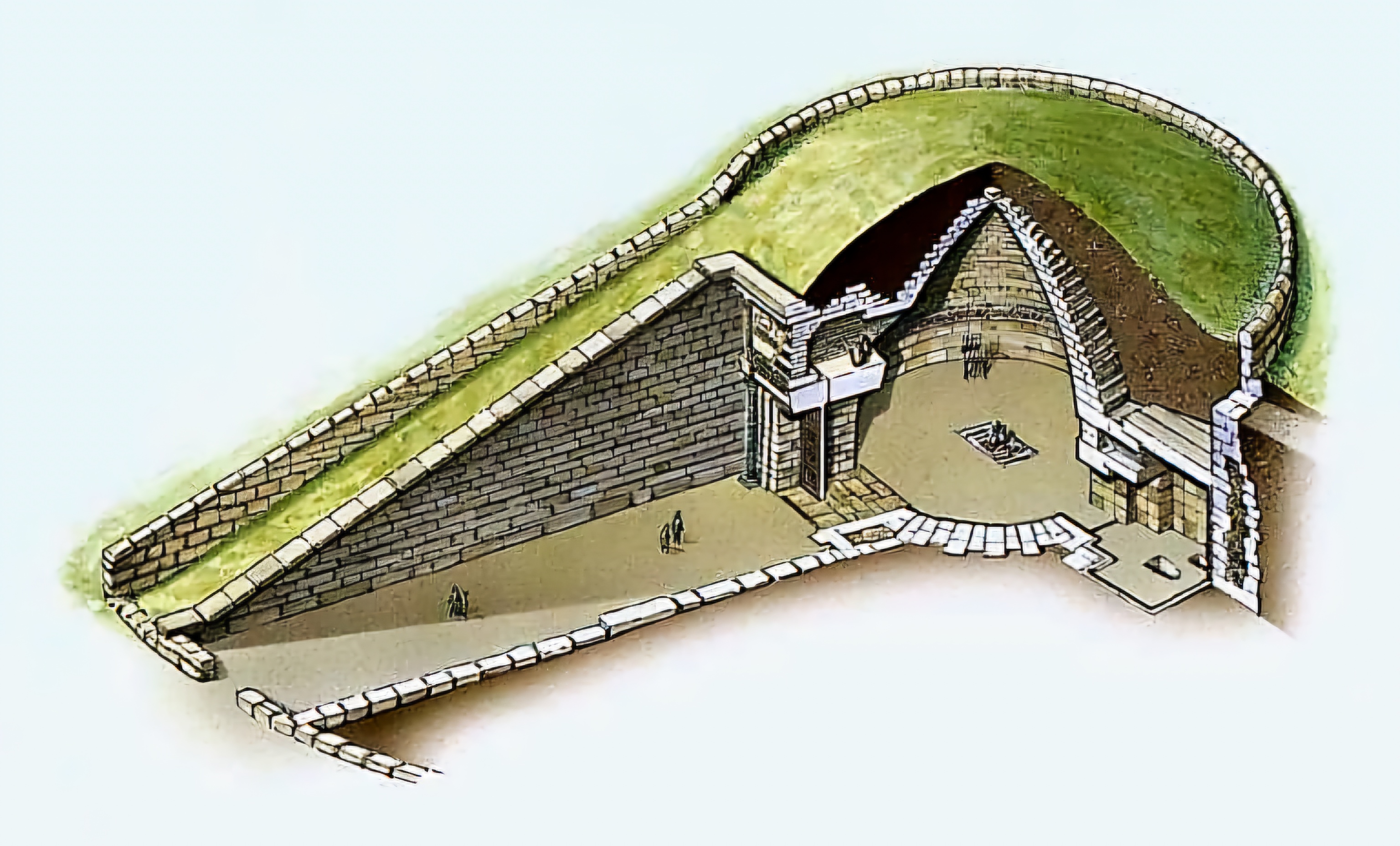 이른바 아트레우스 보물창고 Treasury of Atreus 니 혹은 아가멤놈 무덤 Tomb of Agamemnon 으로 알려진 기원전 1450년 무렵 이 미케네 대형석실분 측단면도라